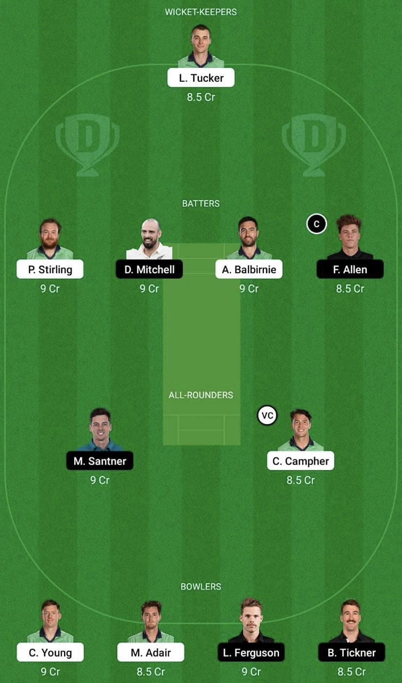 Fantasy Suggestion #2: Lorcan Tucker, Paul Stirling, Andy Balbirnie, Daryl Mitchell, Finn Allen, Mitchell Santner, Curtis Campher, Craig Young, Mark Adair, Lockie Ferguson and Blair Tickner.