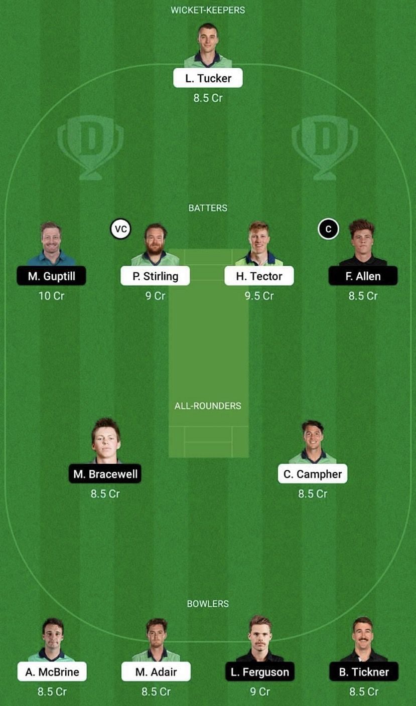 Fantasy Suggestion #1: Lorcan Tucker, Paul Stirling, Harry Tector, Martin Guptill, Finn Allen, Michael Bracewell, Curtis Campher, Andy McBrine, Mark Adair, Lockie Ferguson and Blair Tickner.