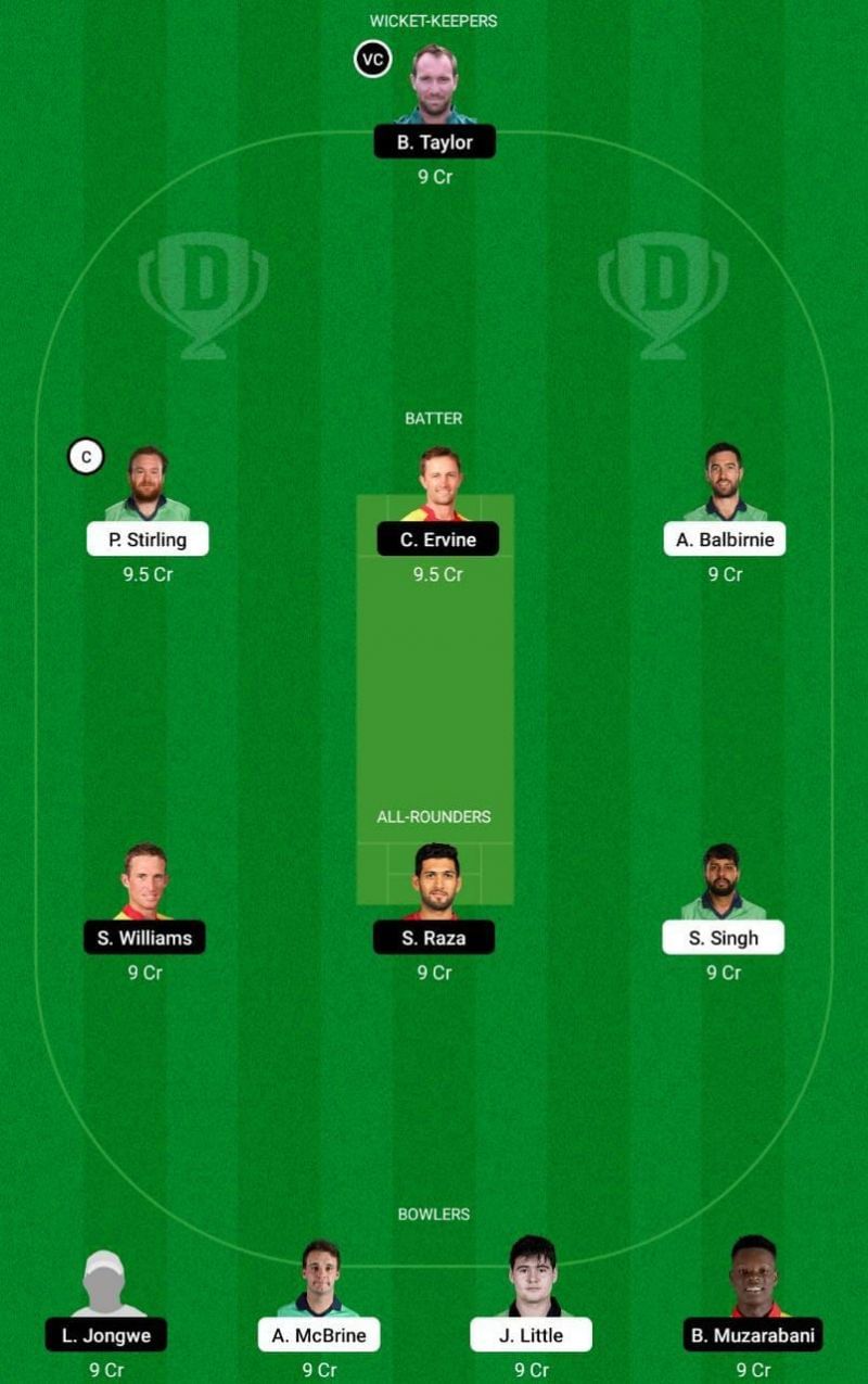 Fantasy Suggestion #1: Brendan Taylor, Andy Balbirnie, Craig Ervine, Paul Stirling, Sean Williams, Sikandar Raza, Simi Singh, Blessing Muzarabani, Luke Jongwe, Joshua Little and Andy McBrine