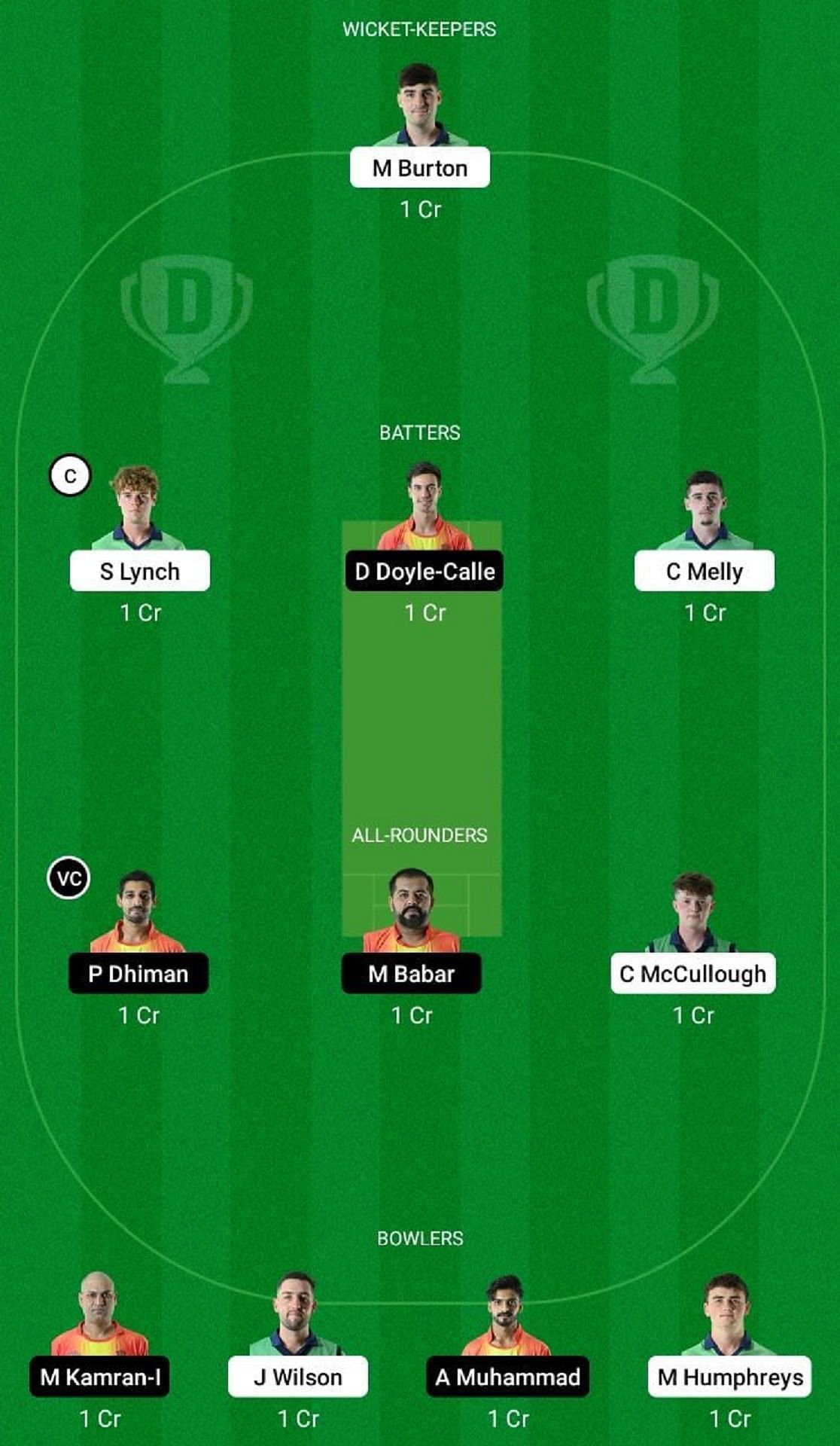 M Burtone is a strong wicketkeeper choice for your IRE-XI vs SPA Dream11 fantasy team. He is his side's second-highest run-scorer with 116 runs in eight matches at a fantastic strike rate of 218.86.