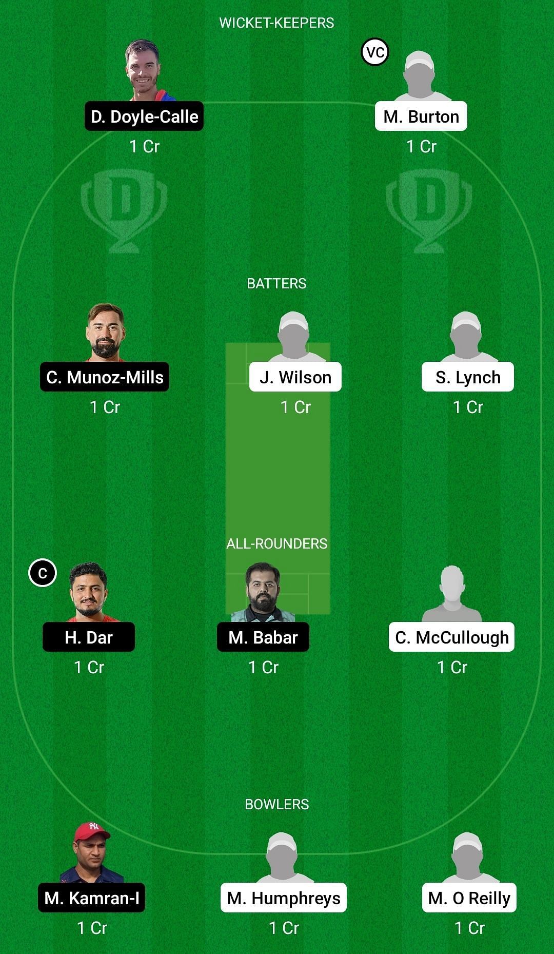 Muhammad Babar, Christian Munoz-Mills (c), Hamza Saleem Dar, Daniel Dayle Calle, Prince Dhiman, Muhammad Ihsan (wk), Adam Alger, Mohammad Kamran, Tom Vine, Atif Mohammad, Gaurang Mahyavanshi