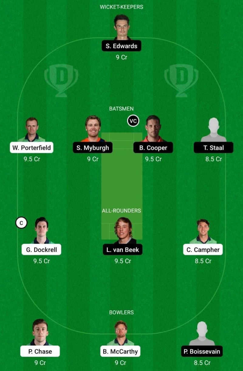 Fantasy Suggestion #1: Scott Edwards, Ben Cooper, Stephan Myburgh, Tonny Staal, William Porterfield, Curtis Campher, George Dockrell, Logan van Beek, Barry McCarthy, Philippe Boissevain, Peter Chase.