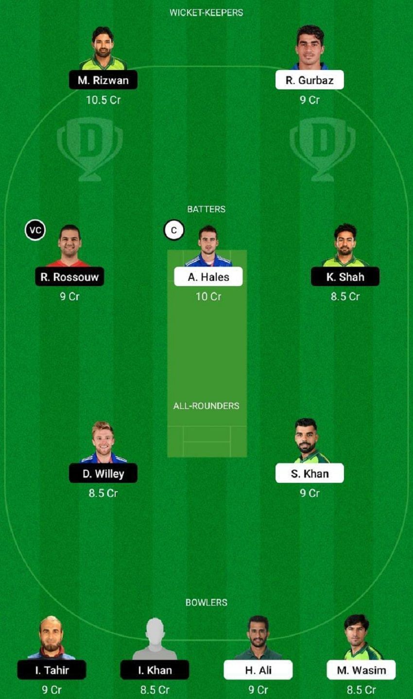 Fantasy Suggestion #2: Mohammad Rizwan, Rahmanullah Gurbaz, Alex Hales, Rilee Rossouw, Khushdil Shah, David Willey, Imran Khan, Shadab Khan, Hasan Ali, Mohammad Wasim and Imran Tahir