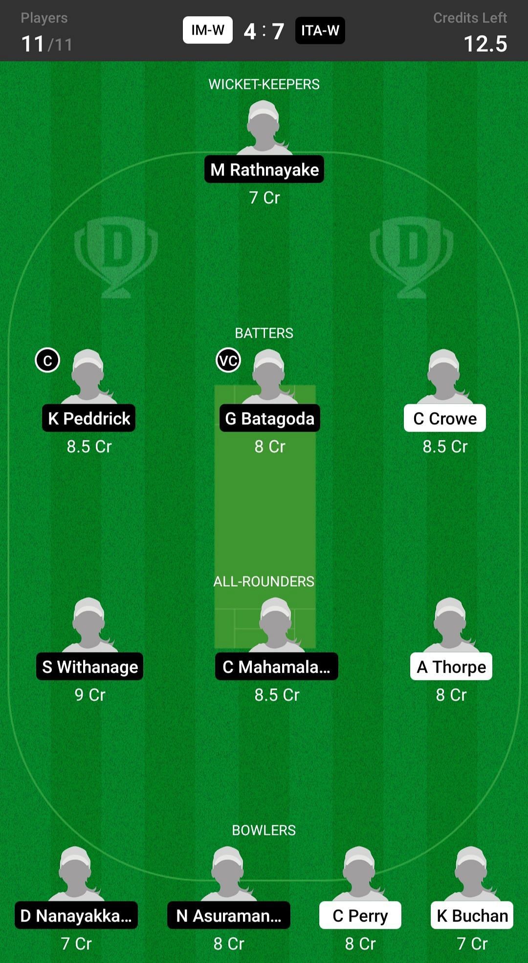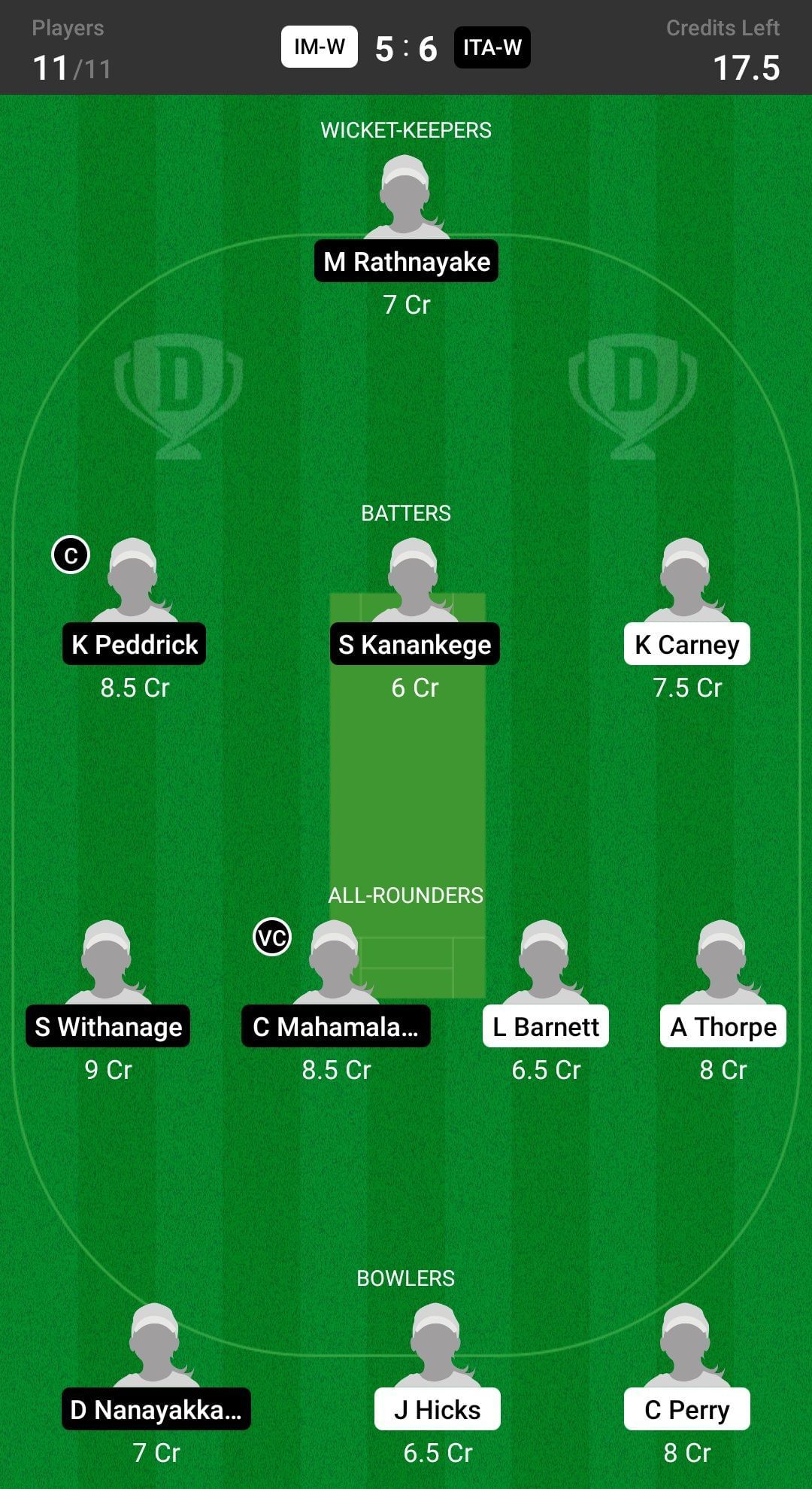 Rathnayake, who has played well in the last few games, is the best wicketkeeper pick. She bats in the top order and could earn additional points from catches and stumpings. J Pullen is another good pick.