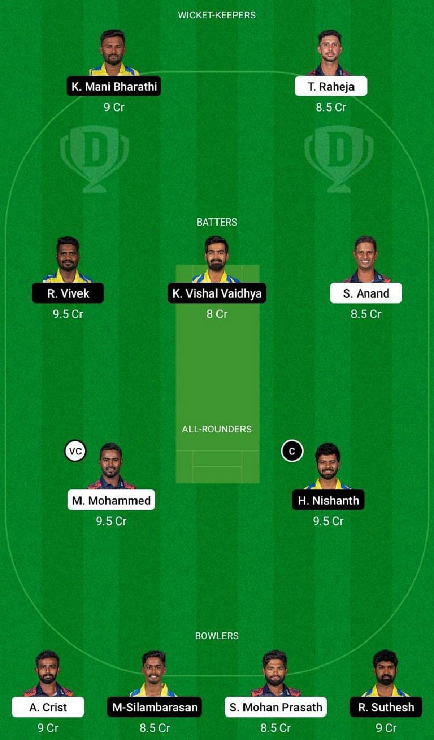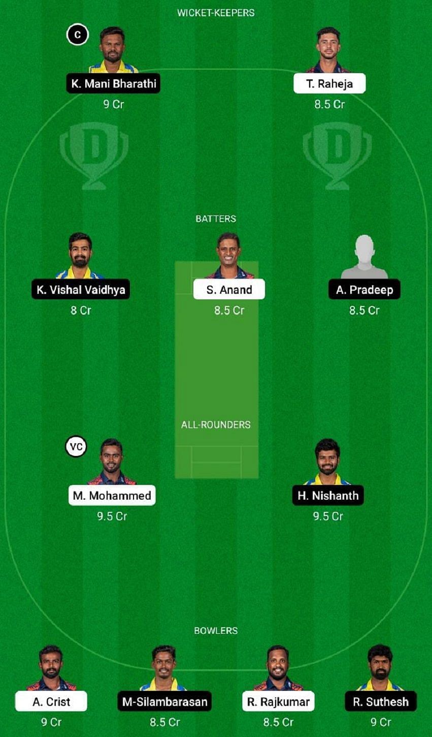 Fantasy Suggestion #2: K Mani Bharathi, Tushar Raheja, AG Pradeep, K Vishal Vaidhya, S Anand, M Mohammed, Hari Nishanth, Aswin Crist, M Silamabarasan, R Rajkumar and R Suthesh.