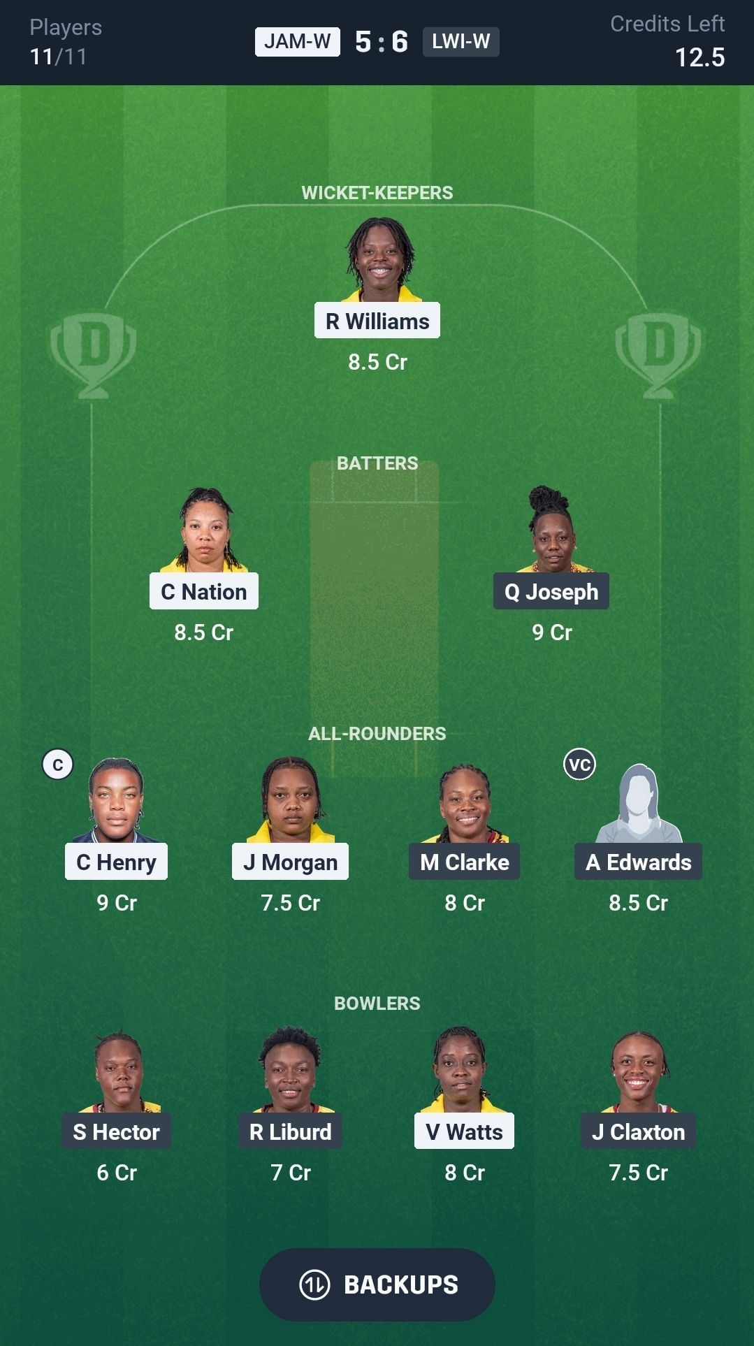 JAM-W vs LWI-W match captain and vice-captain choices