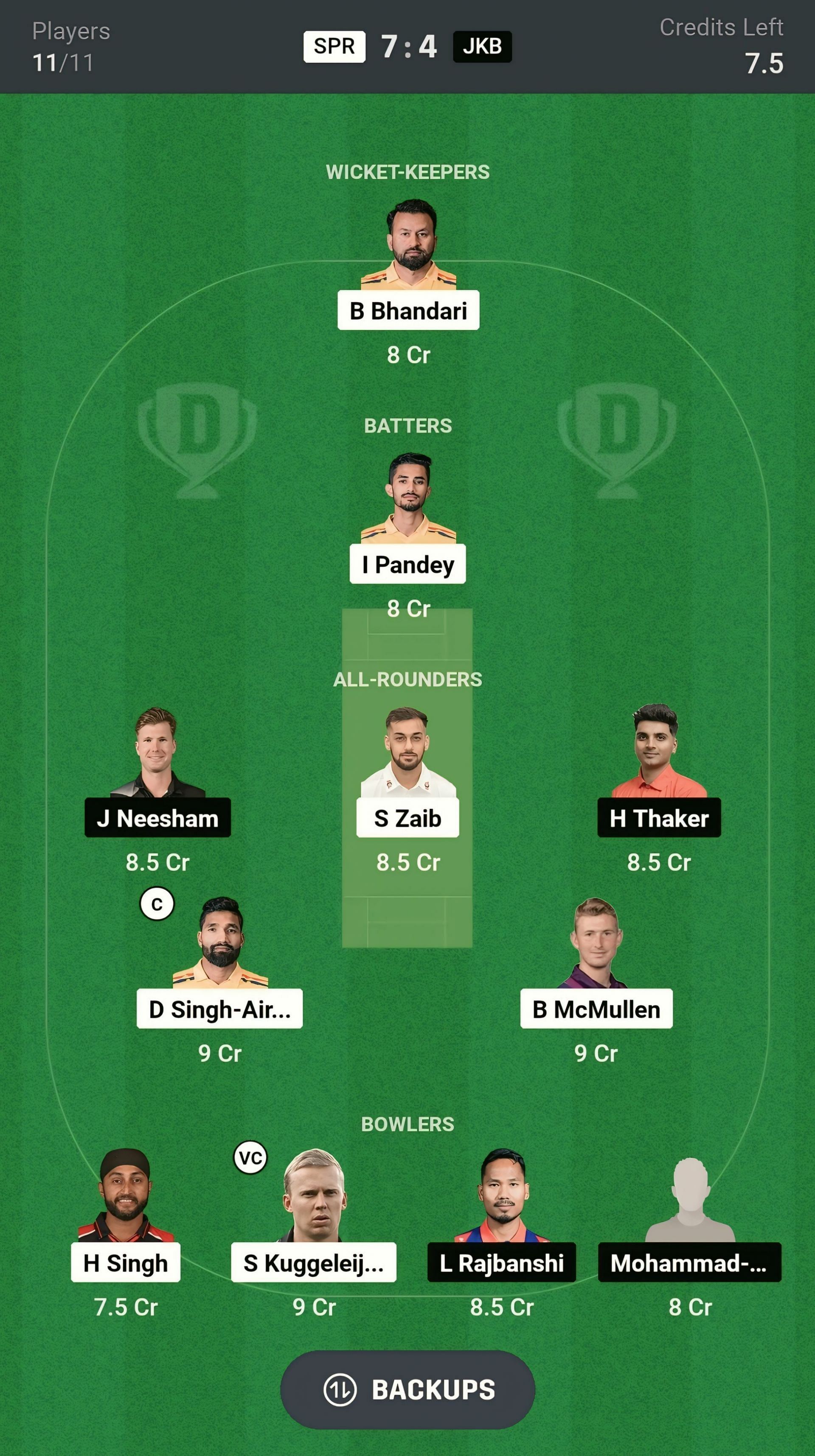 Dipendra Singh Airee and Saif Zaib are the best all-rounder picks for the Dream11 team. Both players are crucial for today's match. Airee will bat in the top order and complete his quota of overs in today's match. He has smashed 218 runs and taken 8 wickets in the last eight matches. Jimmy Neesham is another good all-rounder for today's match.
