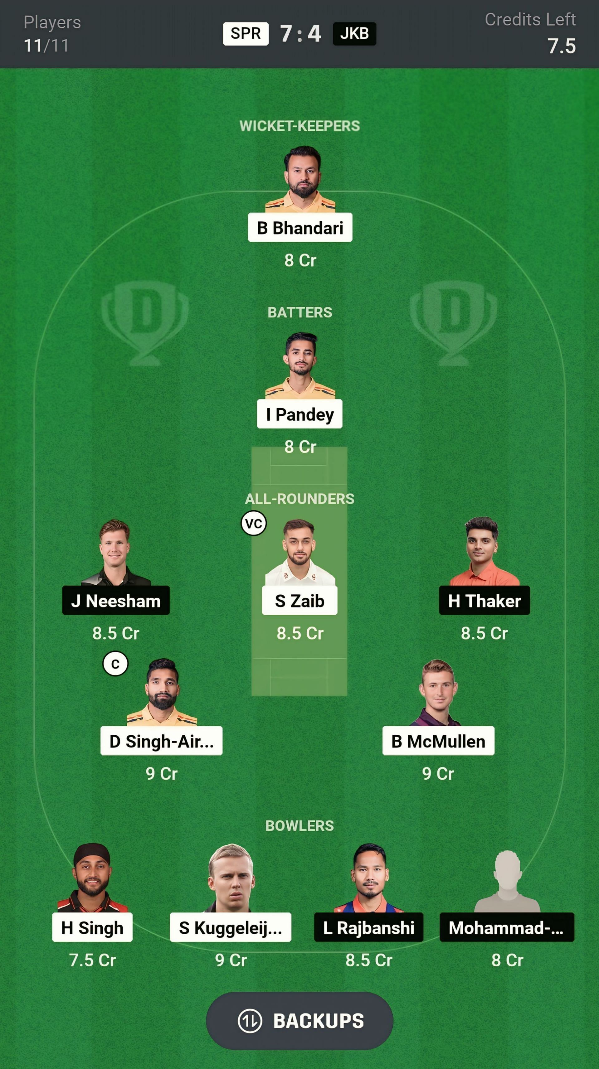 All-rounders: D Singh Airee, B McMullen, J Neesham, H Thaker, S Zaib