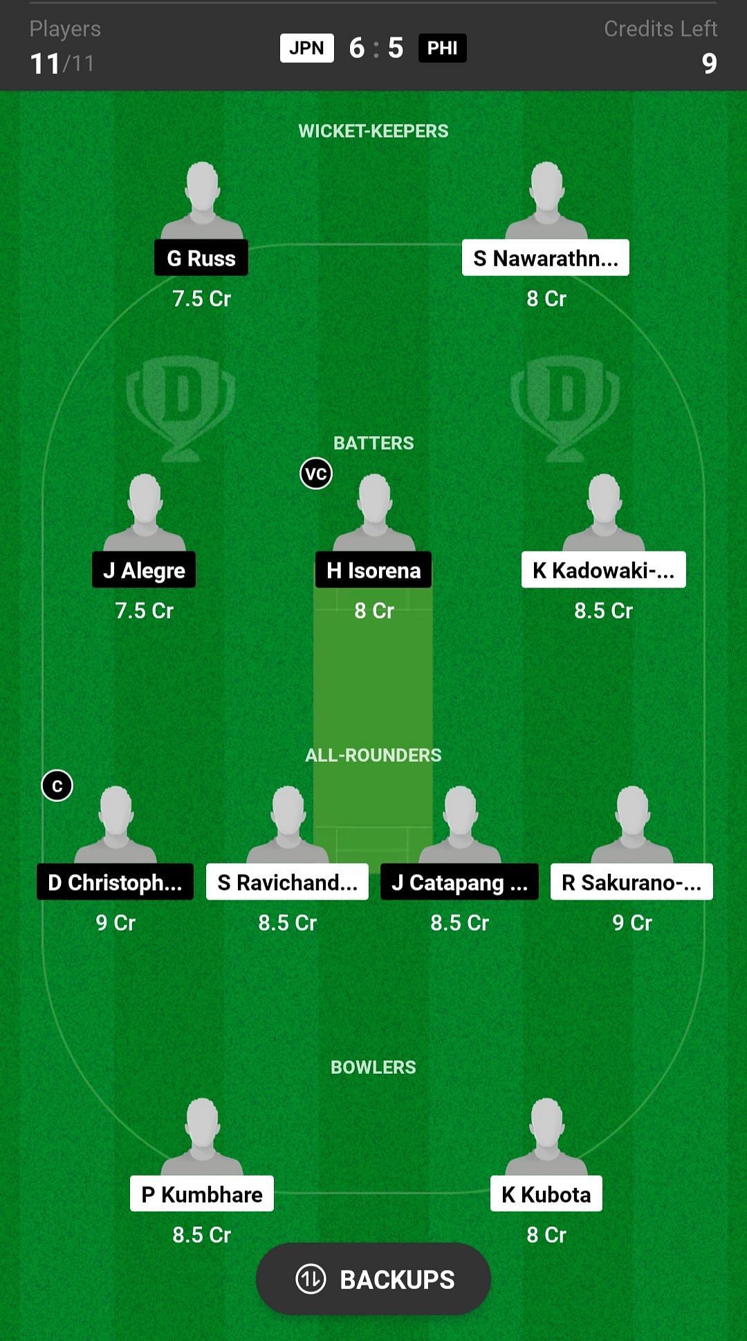 JPN vs PHI match captain and vice-captain choices