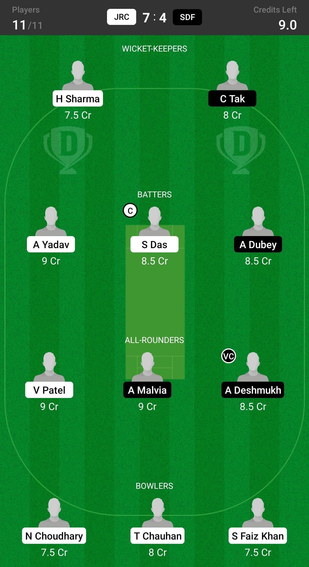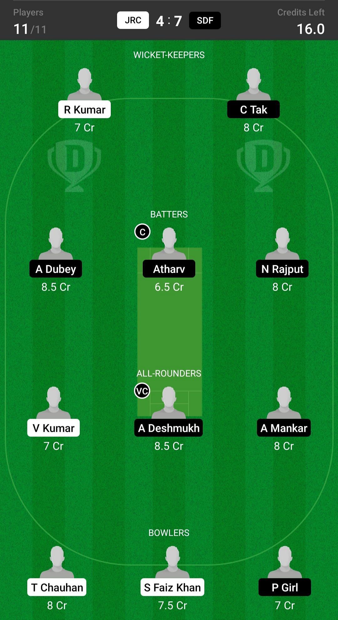 Jabalpur Champions vs Samdariya Fighters Dream11 Prediction, Grand League
