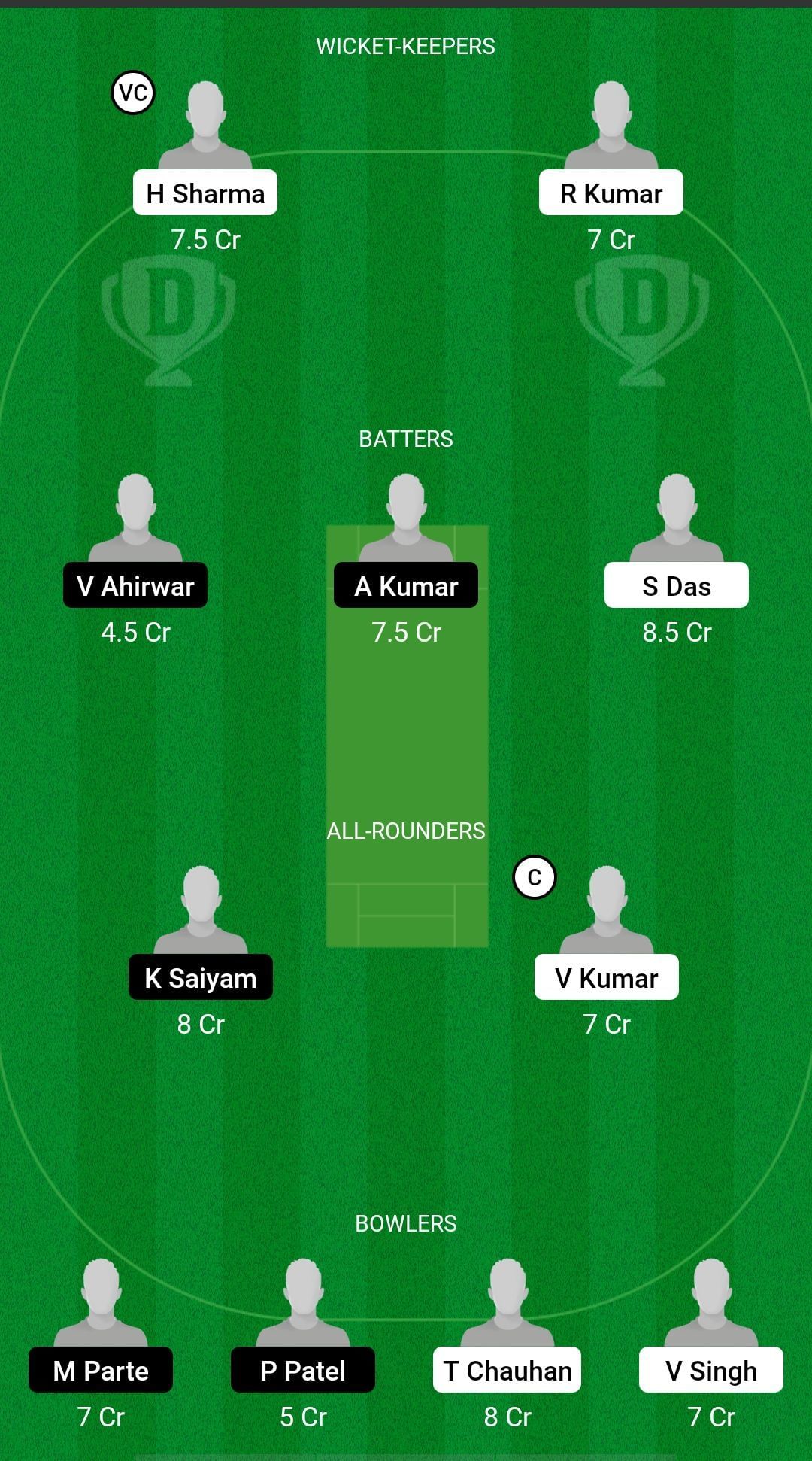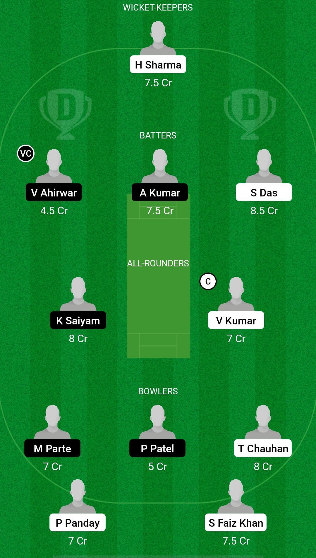 Bowlers: Mukesh Parte, Piyush Patel, Tushar Chauhan, Prakhar Panday, Sadain Faiz Khan