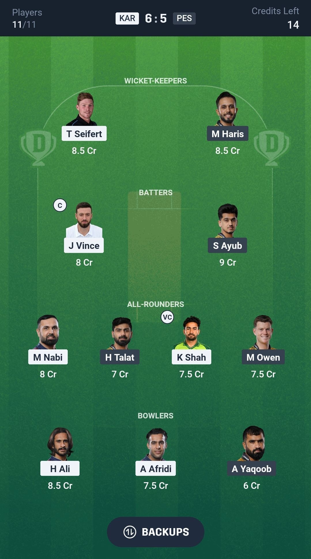 KAR vs PES Dream11 Match Top Picks