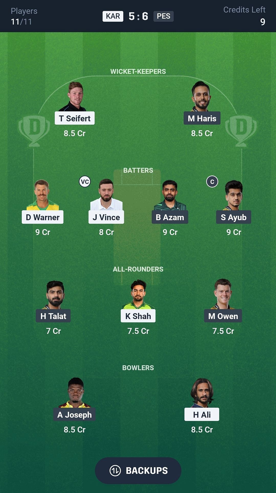 KAR vs PES match captain and vice-captain choices