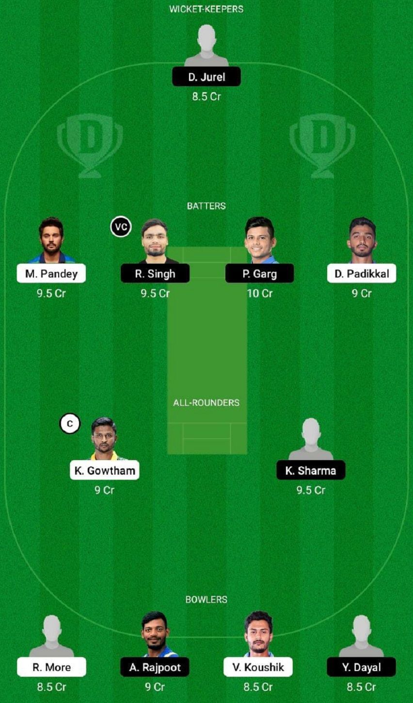 Fantasy Suggestion #1: D Jurel, M Pandey, R Singh, P Garg, D Padikkal, K Gowtham, K Sharma, R More, A Rajpoot, V Koushik, Y Dayal
