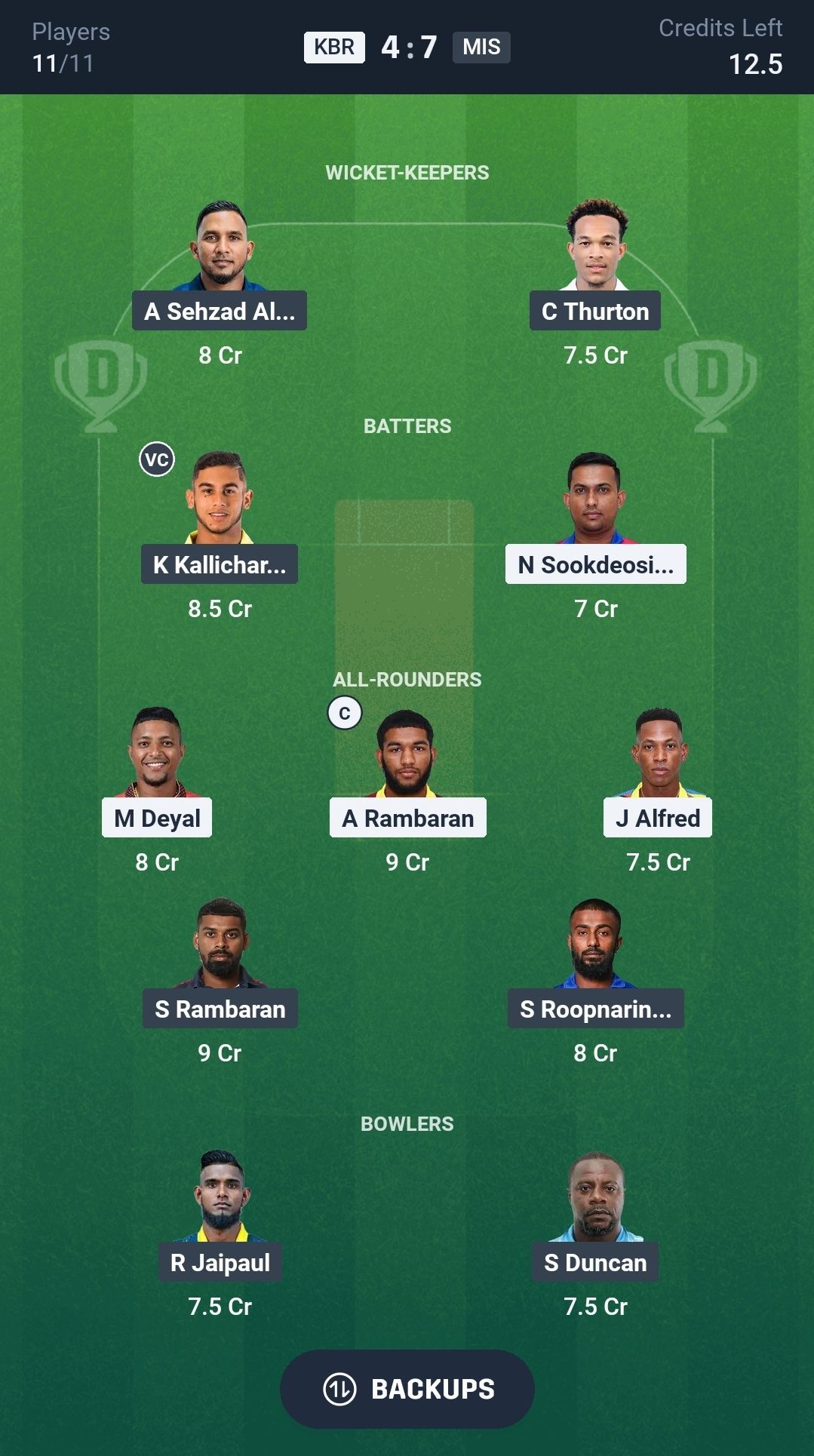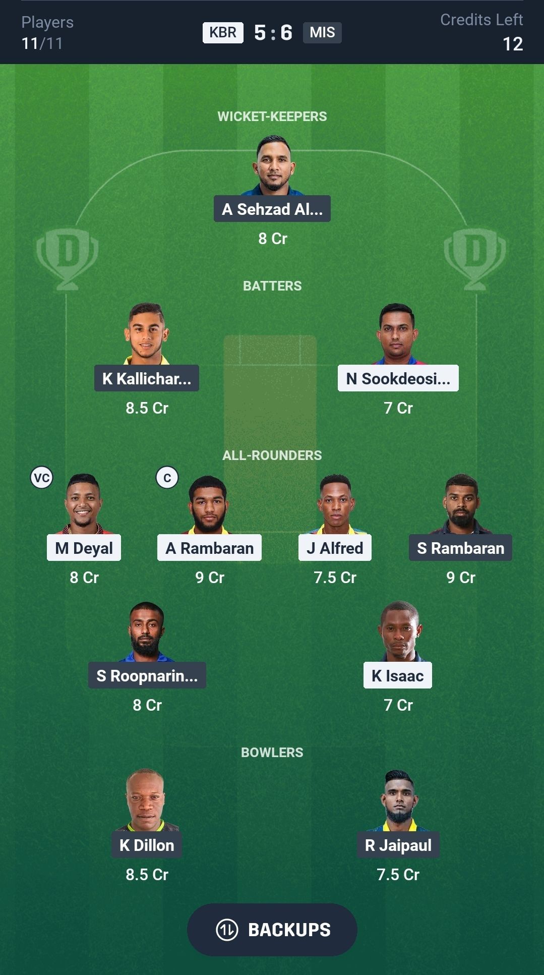 A Rambaran and S Rambaran are the best all-rounder picks for the Dream11 team. Both players are crucial for today's match. A Rambaran will bat in the top order and bowl a good number of overs in today's match. He has smashed 222 runs and taken seven wickets in just eight matches. S Roopnarine is another good all-rounder for today's nail-biting match.