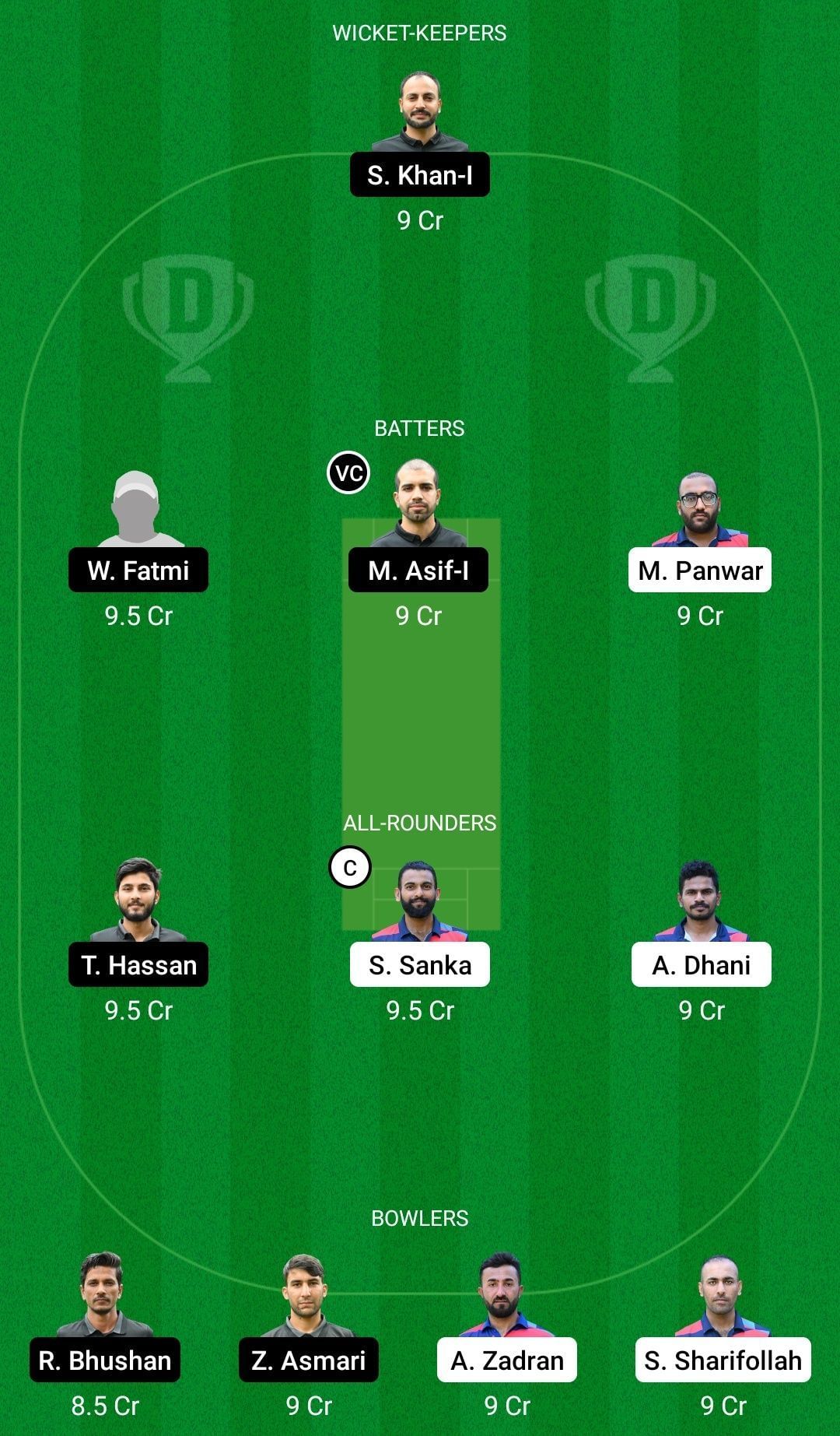 All-rounders: Taha Hassan, Sasanka Sanka (c), Akshay Dhani