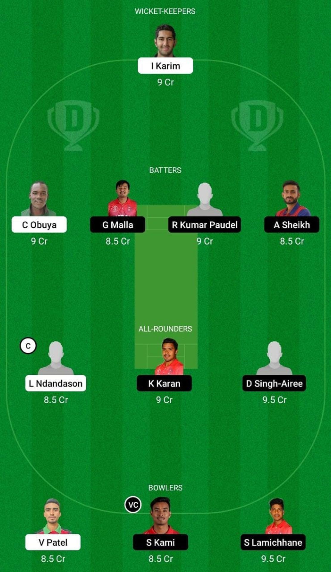 Bowlers: Sandeep Lamichhane, Sompal Kami, Vraj Patel, Nehemiah Odhiambo