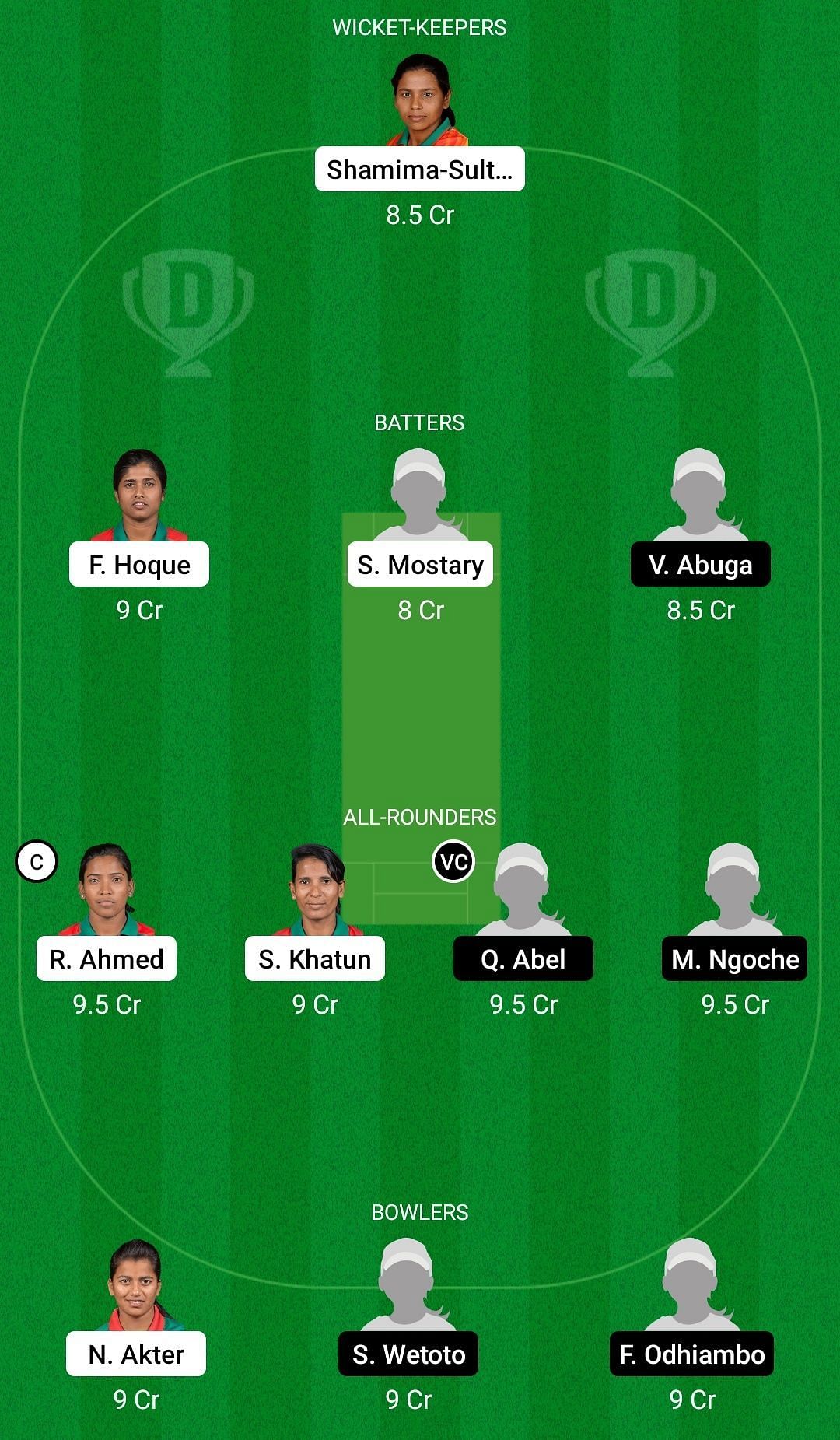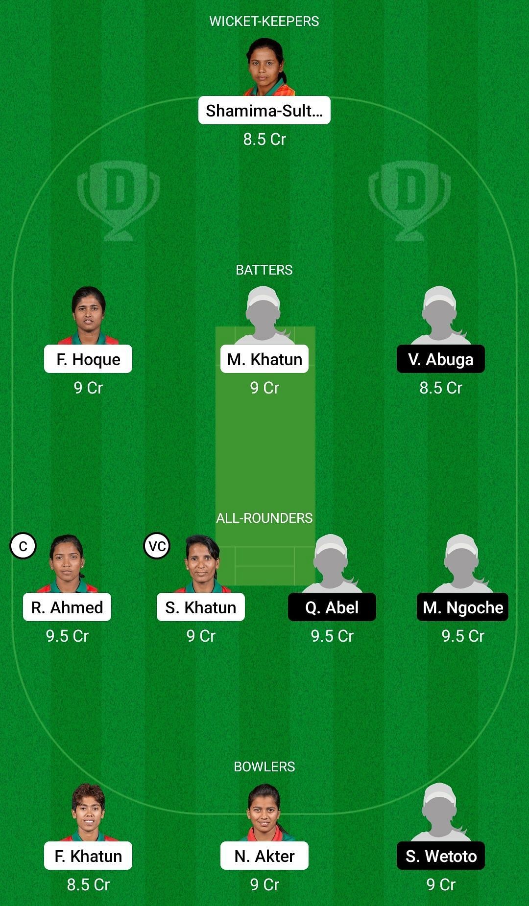 Captain: Rumana Ahmed. Vice-captain: Queentor Abel.