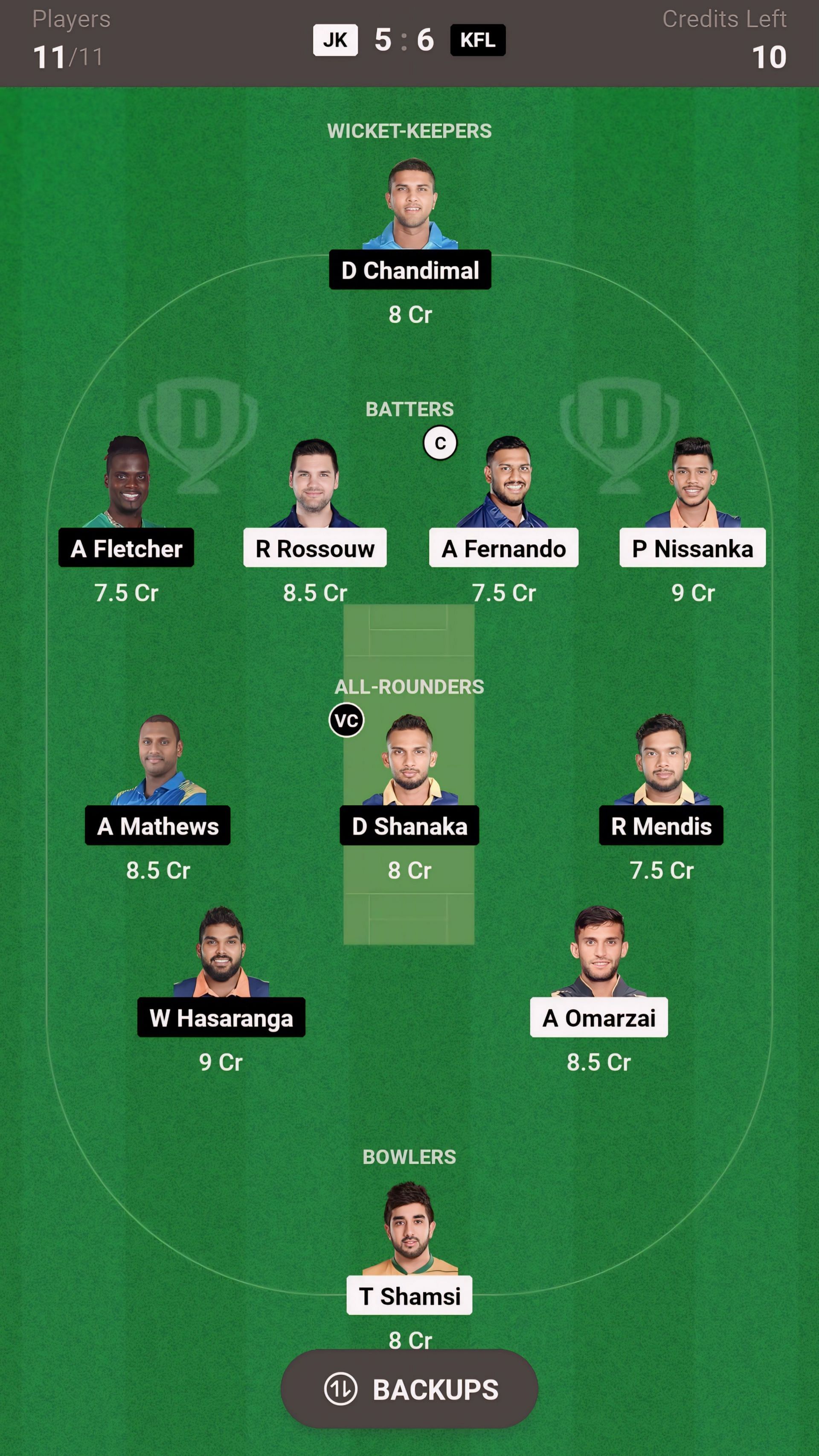 All-rounders: A Omarzai, W Hasaranga, D Shanaka, A Matthews, R Mendis