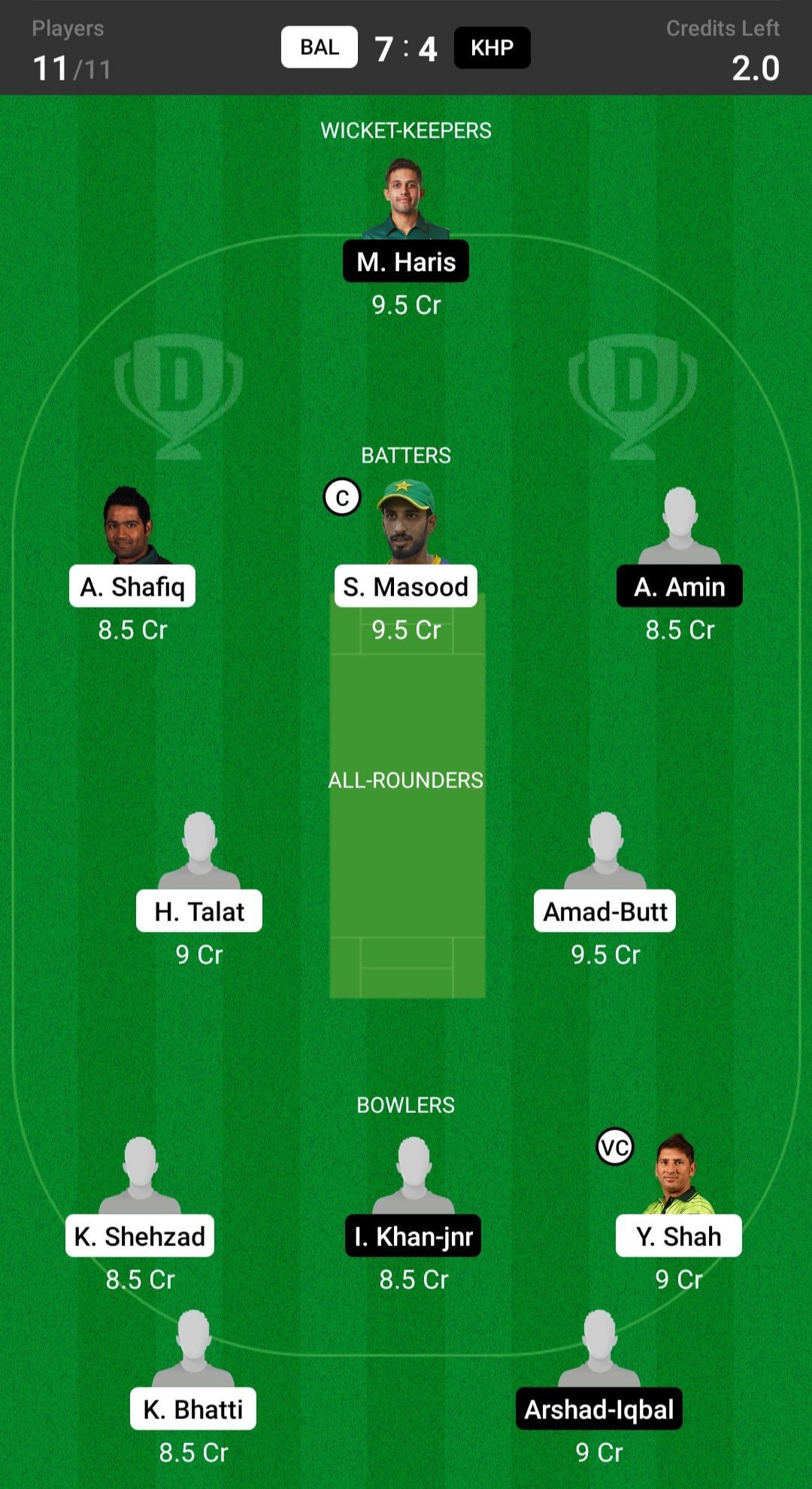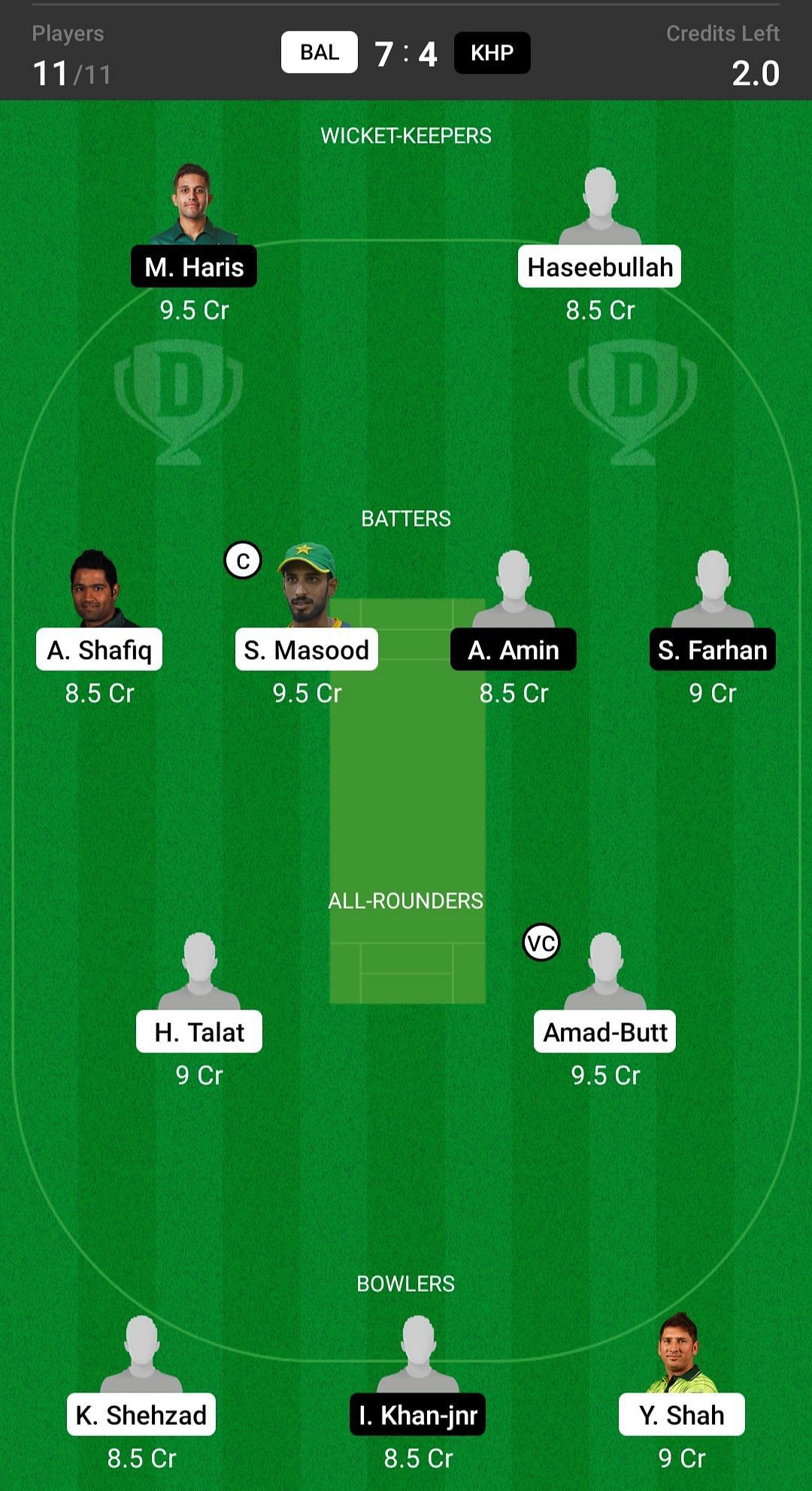 KHP vs BAL Dream11 Match Top Picks