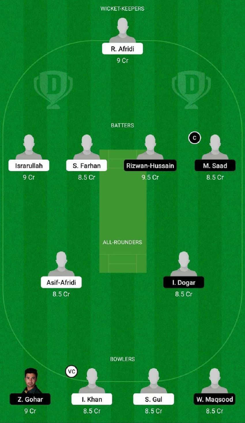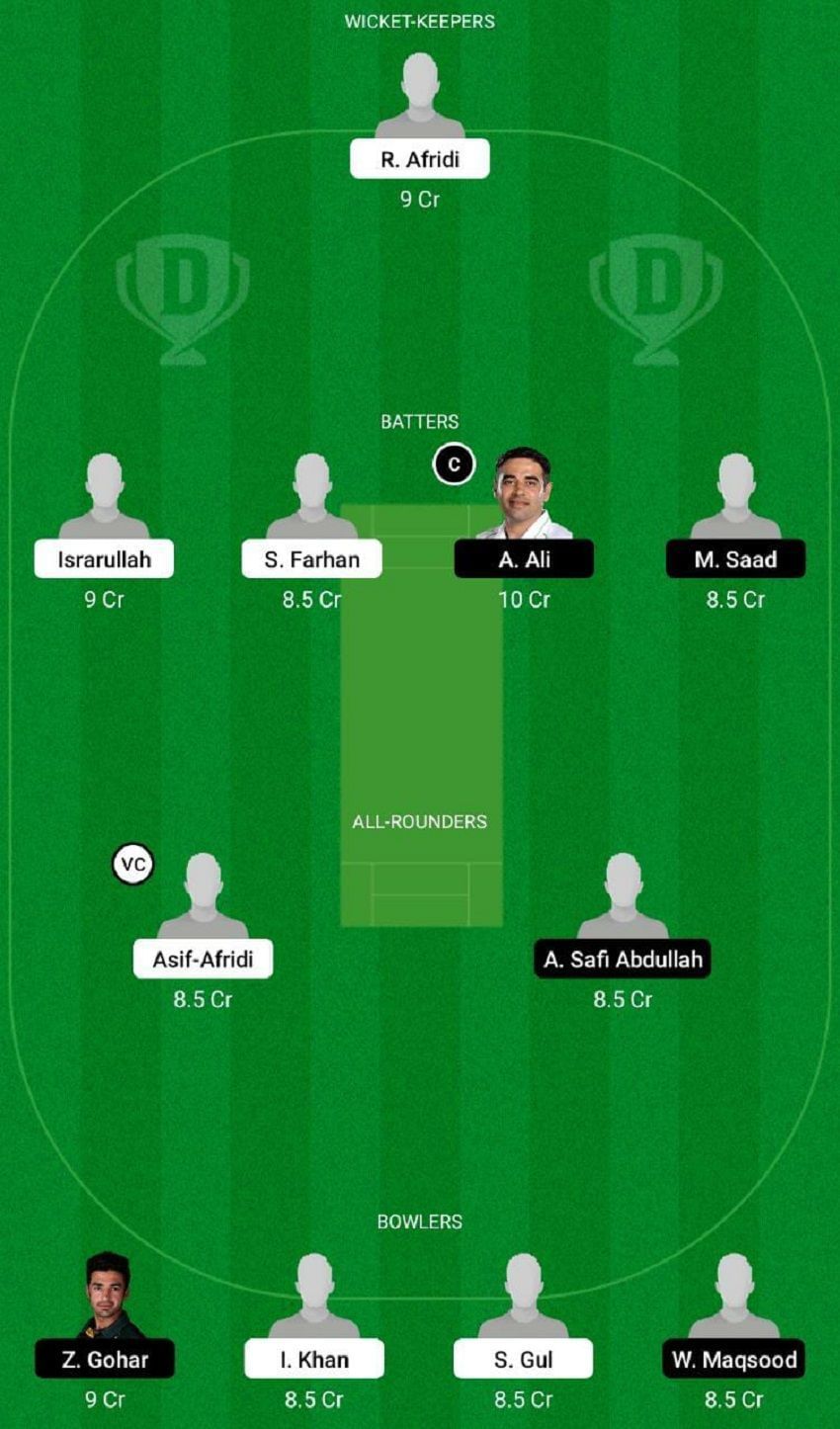 Fantasy Suggestion #1: R Afridi, Israrullah, S Farhan, A Ali, M Saad, A Afridi, A Safi Abdullah, Z Gohar, I Khan, S Gul and W Maqsood