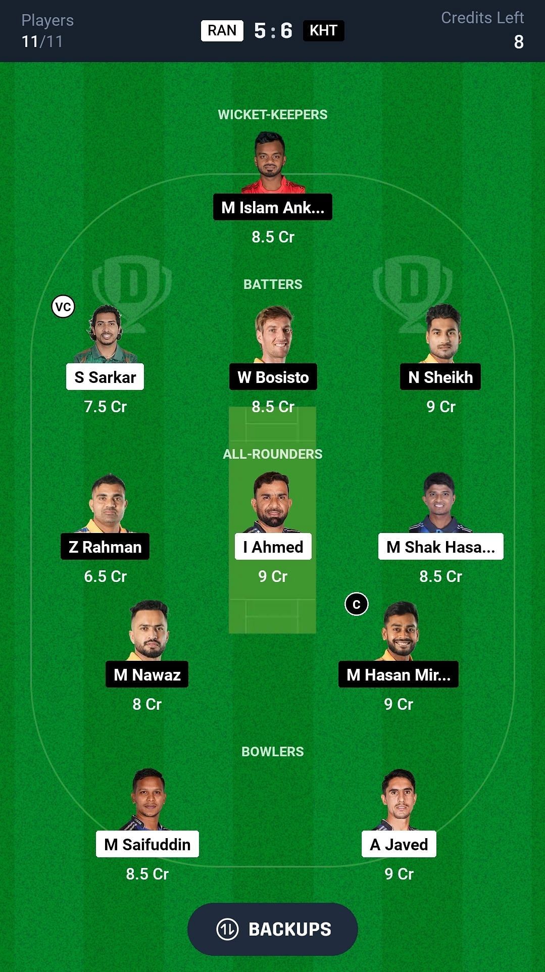 Mahidul Islam is no doubt the best wicket-keeper pick for today's match. He is expected to bat in the top order and perform the wicket-keeping duties for his team. He has smashed 275 runs in the last 12 matches. Nurul Hasan is another good wicket-keeper option for today's match.