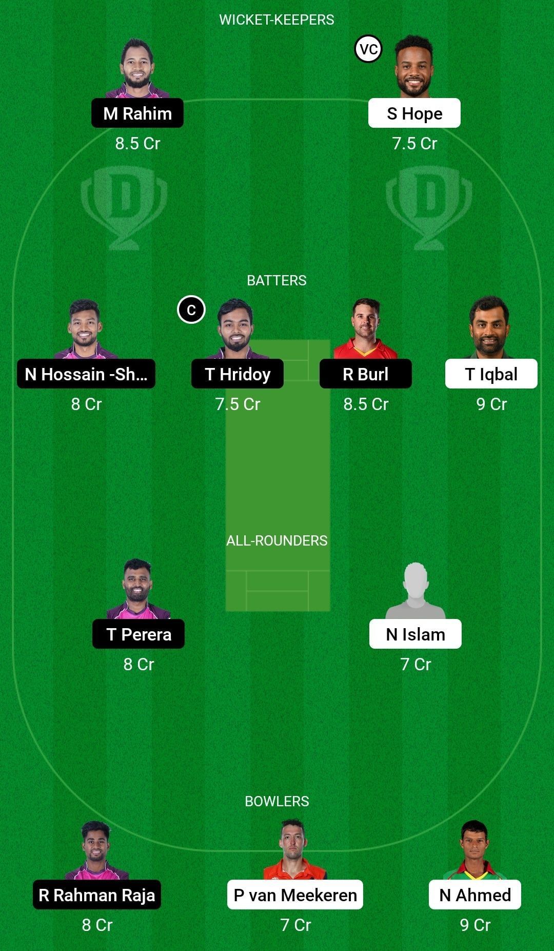 Bowlers: Rejaur Rahman Raja, Rubel Hossain, Paul van Meekeren, Nasum Ahmed