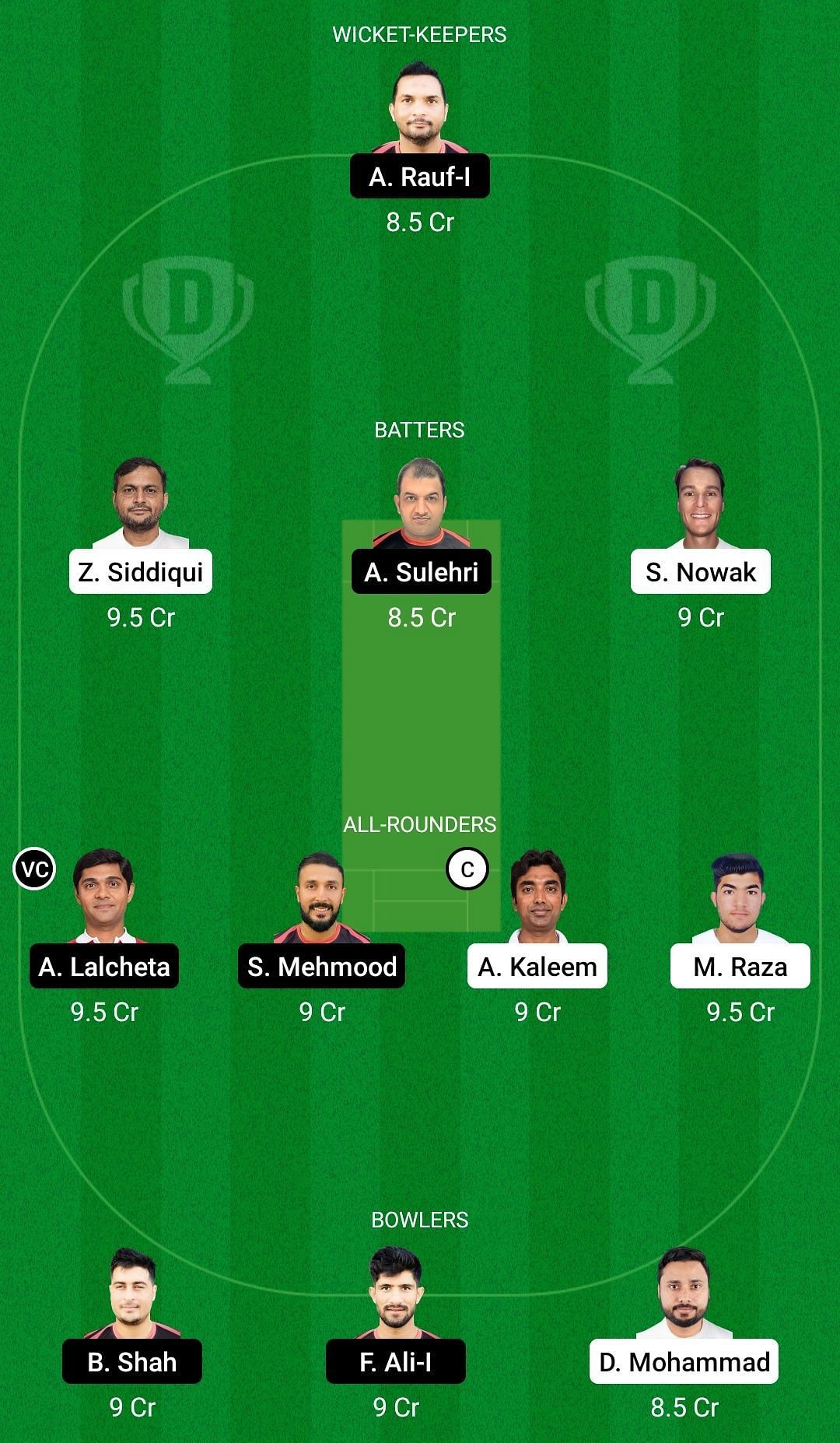 Captain: Muzahir Raza. Vice-captain: Sufyan Mehmood.