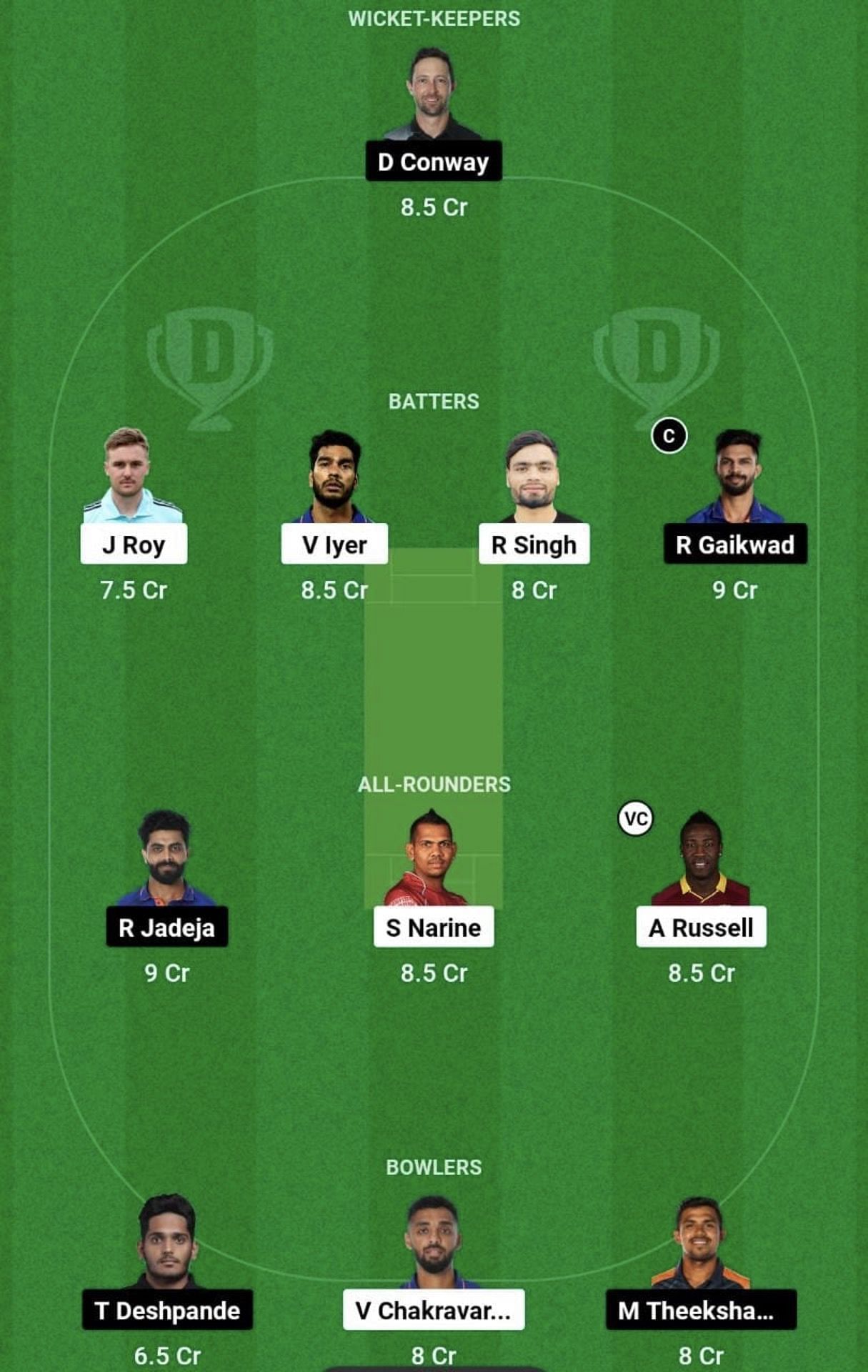 KKR vs CSK Dream11 Prediction Team Today, Grand League