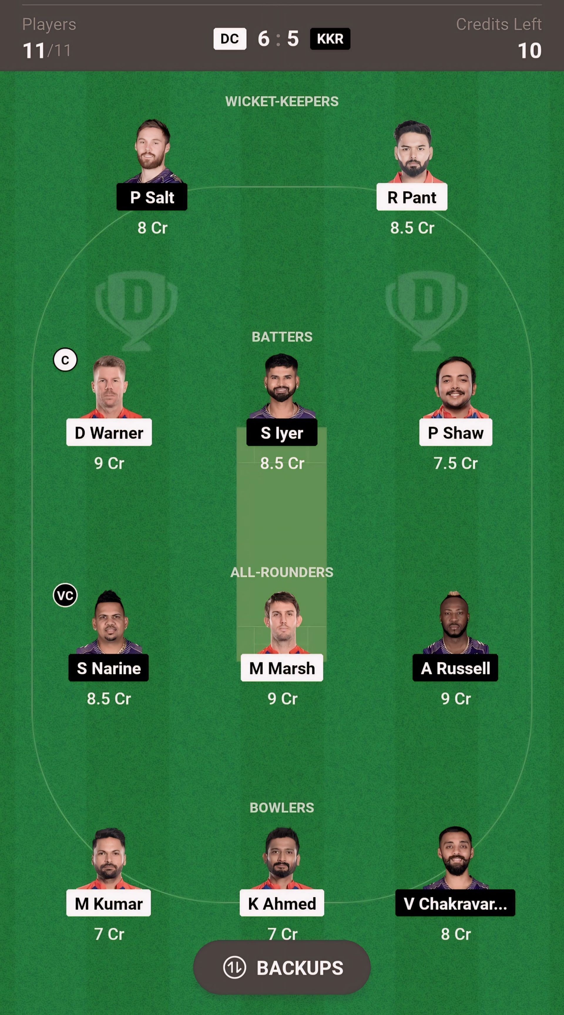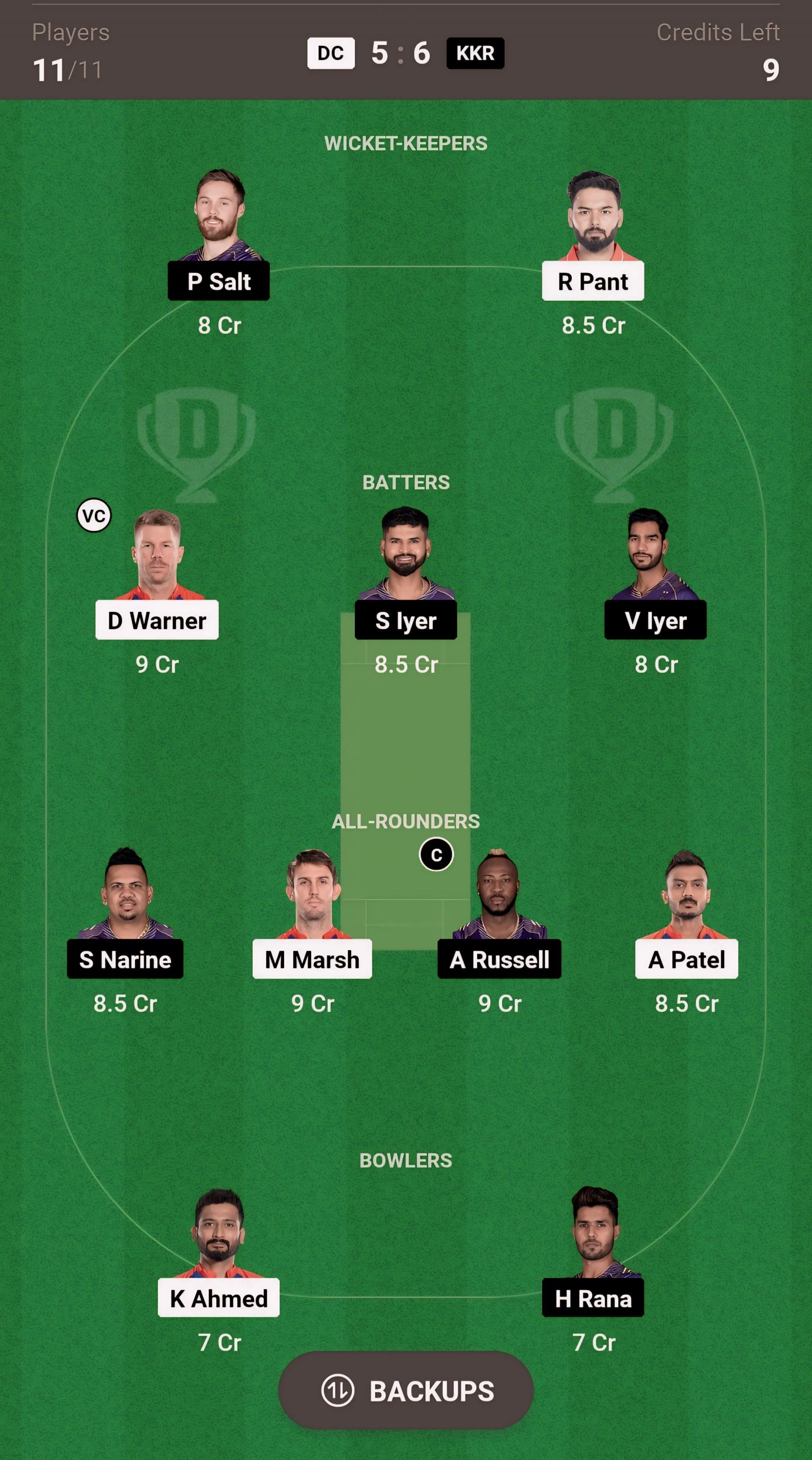 David Warner has scored the most runs against KKR in the IPL (1075) at an exceptional average of 45. He also averages 42 at this venue. Shreyas Iyer is another good batter pick who has smashed a total of 96 runs in the two head-to-head matches at a strike rate of 137.