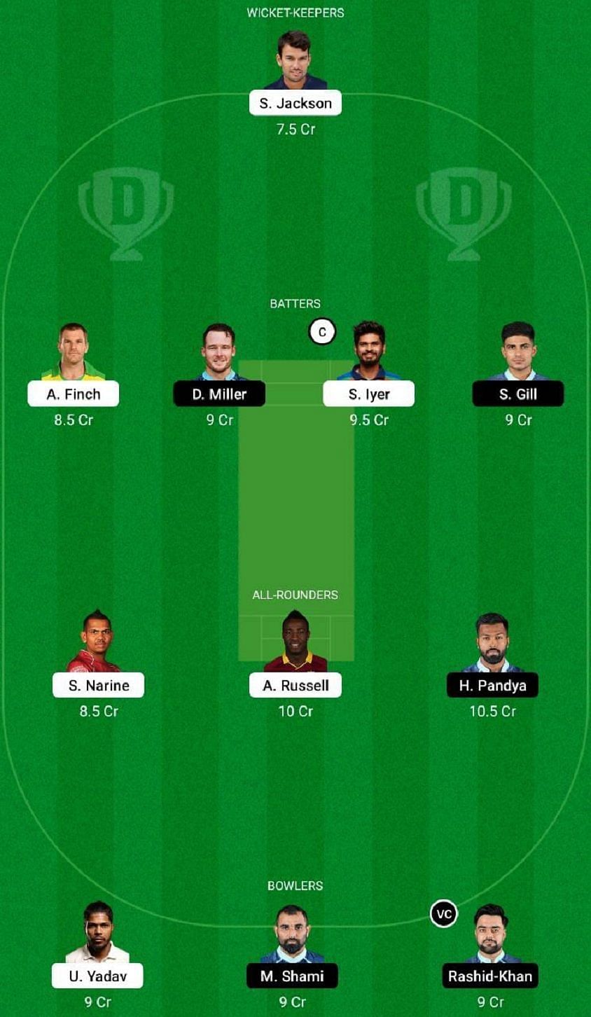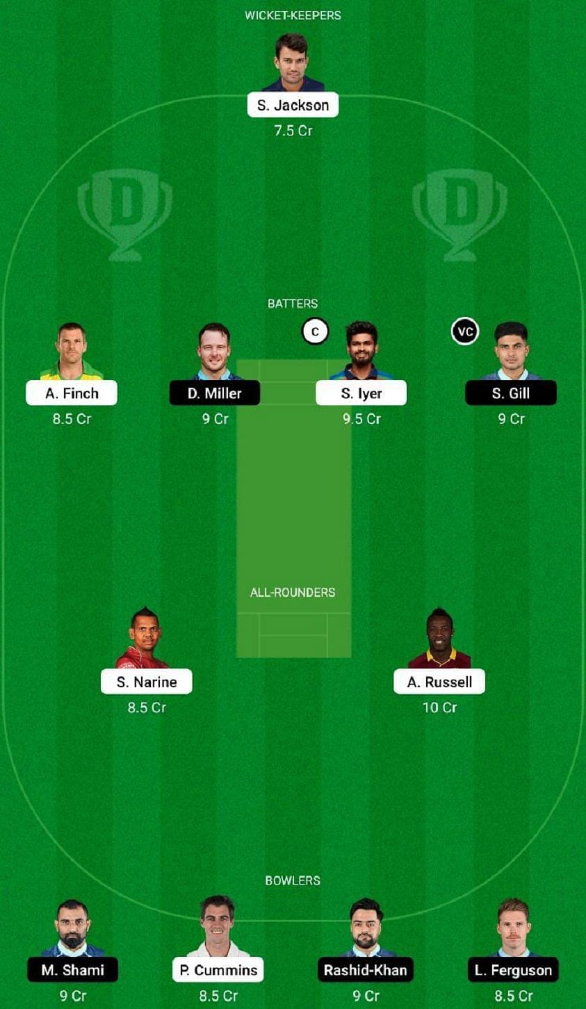 Fantasy Suggestion #1: Sheldon Jackson, Aaron Finch, David Miller, Shreyas Iyer, Shubman Gill, Sunil Narine, Andre Russell, Mohammed Shami, Pat Cummins, Rashid Khan and Lockie Ferguson.
