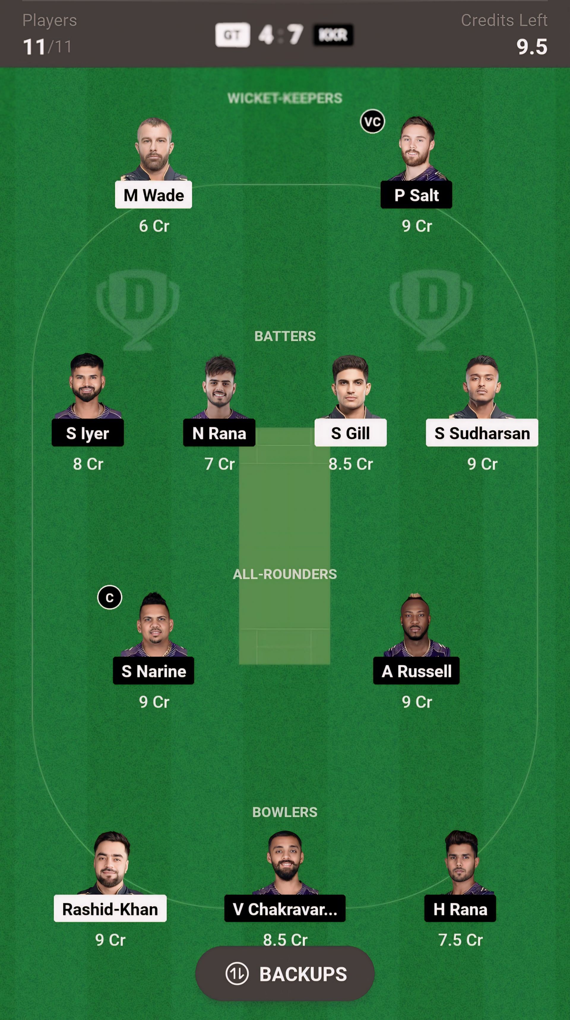 Kolkata Knight Riders vs Gujarat Titans Dream11 Prediction Today, Grand League