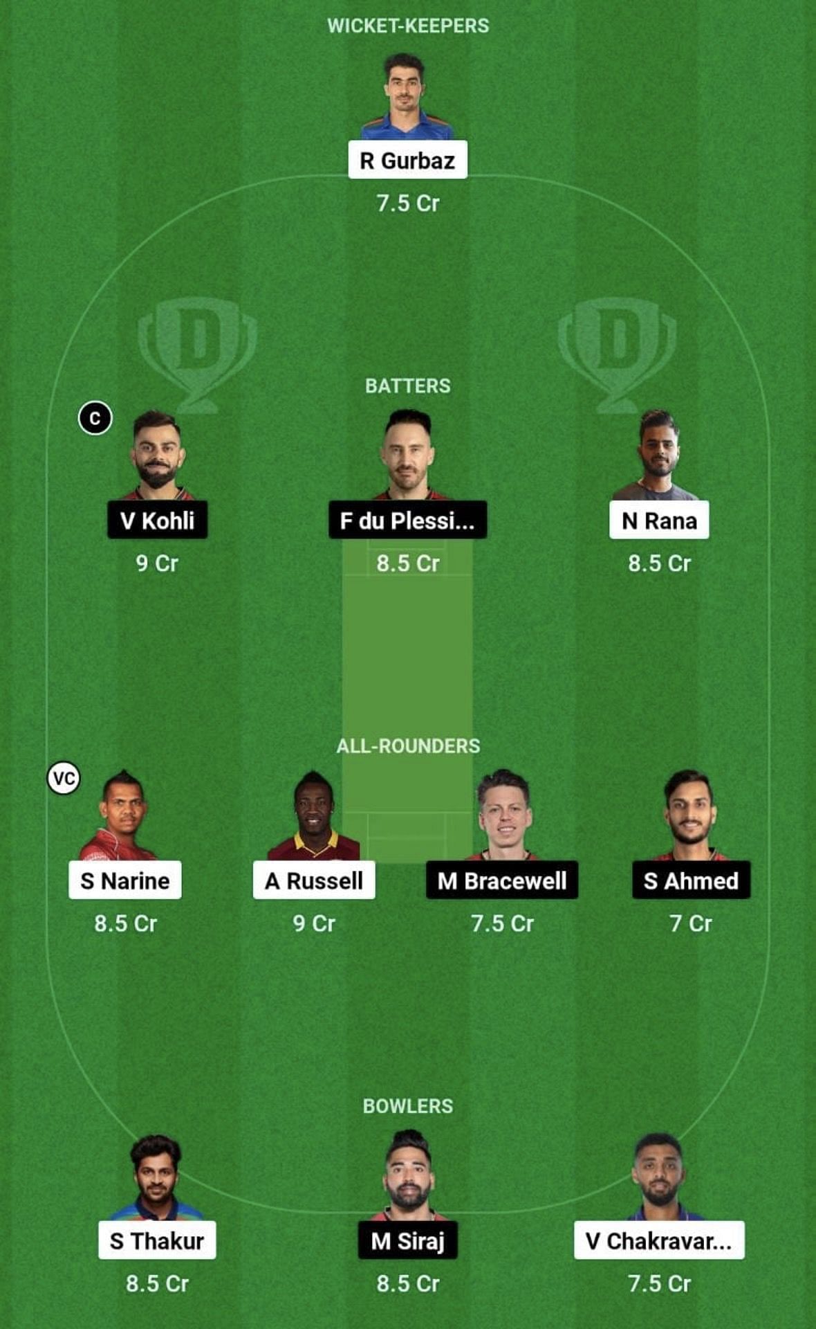 KKR vs RCB Dream11 Prediction Team Today, Grand League