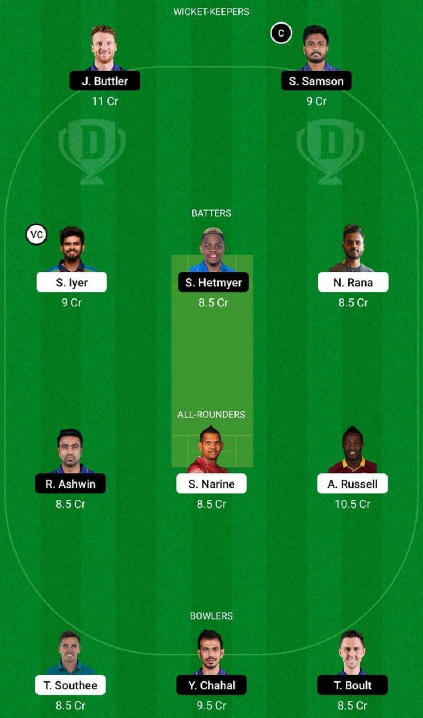 Fantasy Suggestion #1: Jos Buttler, Sanju Samson, Shreyas Iyer, Shimron Hetmyer, Nitish Rana, Ravi Ashwin, Sunil Narine, Andre Russell, Tim Southee, Yuzvendra Chahal and Trent Boult.