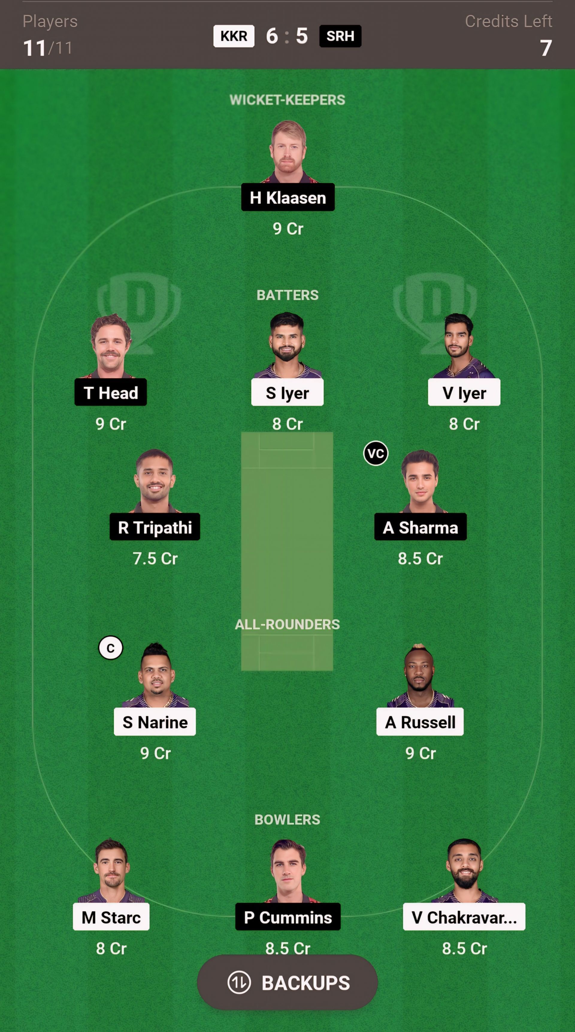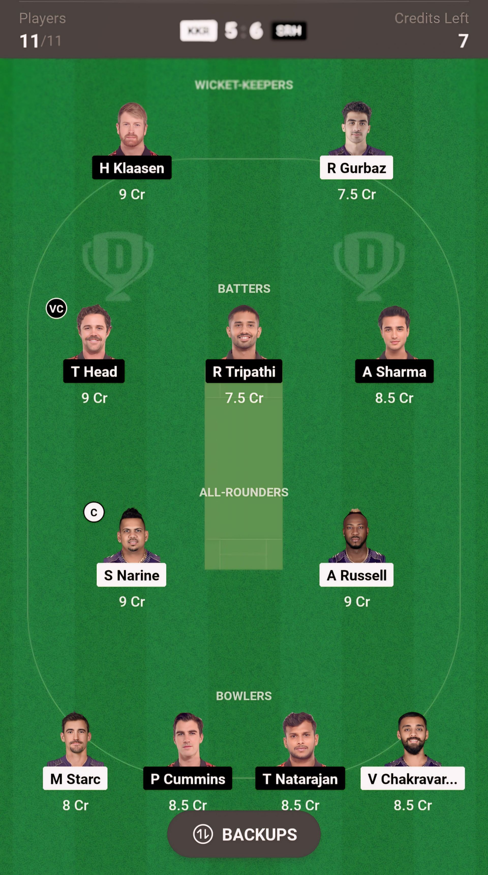 Bowlers: P Cummins, V Chakaravarthy, M Starc