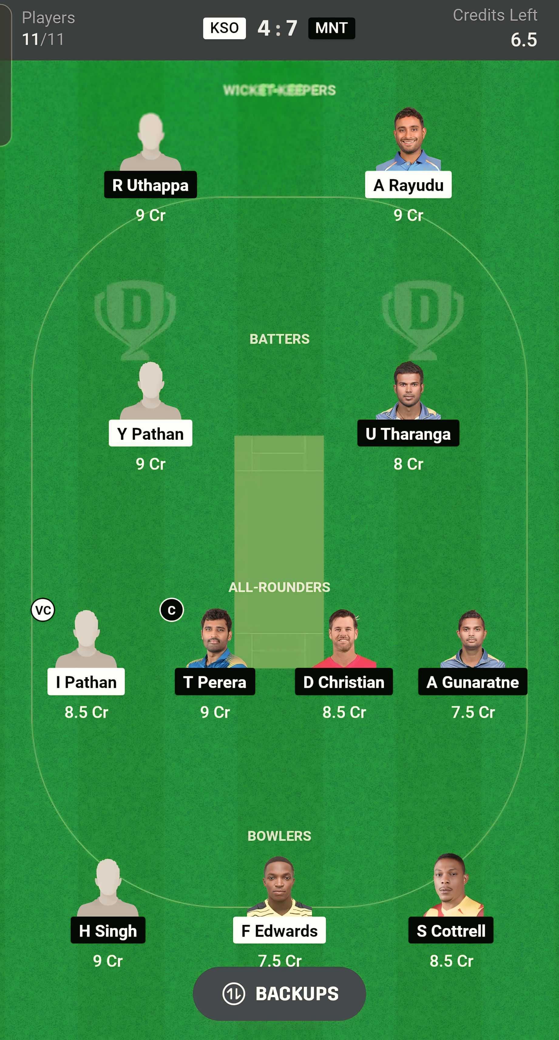 Thisara Perera and Irfan Pathan are the best all-rounder picks for the Dream11 team. Both players will play a crucial role for their teams in today's match. Irfan can be lethal with the new ball as he can swing it in both directions. Daniel Christian is another good all-rounder for today's match. He will bat in the middle order and is expected to bowl around two to three overs.