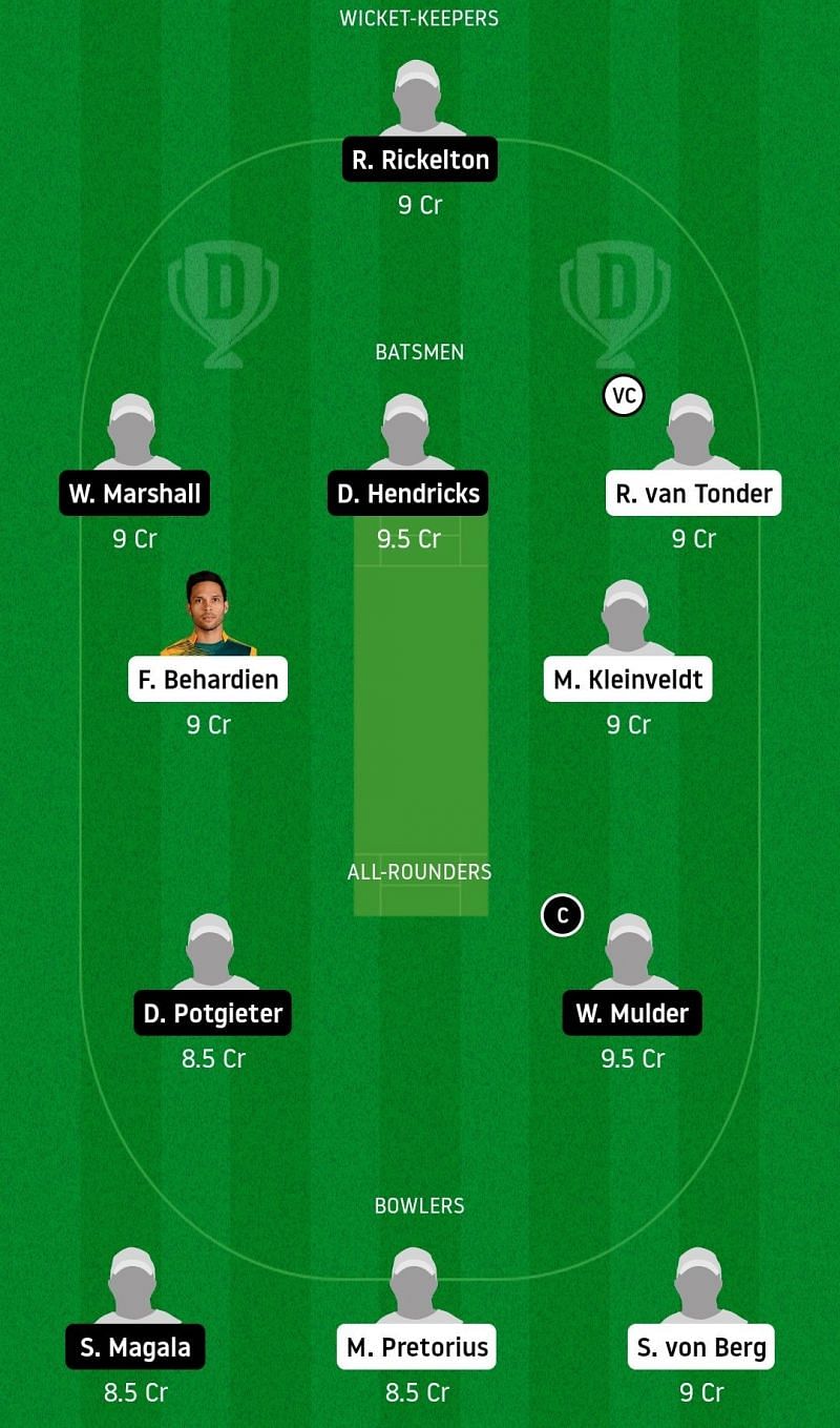 Fantasy Suggestion #1: Ryan Rickelton, Wesley Marshall, Dominic Hendricks, Raynard van Tonder, Farhaan Behardien, Matthew Kleinveldt, Delano Potgieter, Wiaan Mulder, Sisanda Magala, Migael Pretorius, Shaun von Berg.