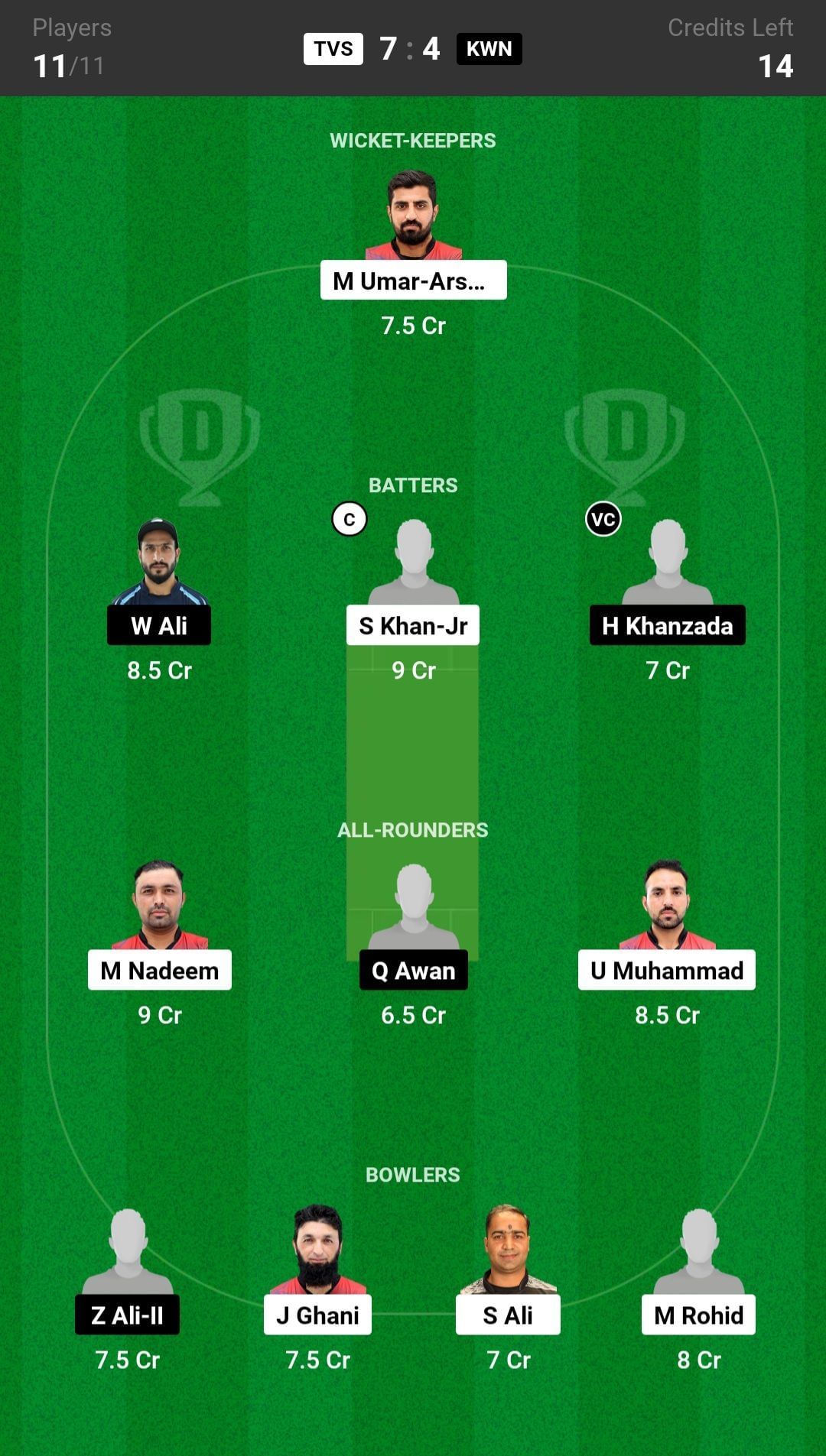 KWN vs TVS Dream11 Match Top Picks