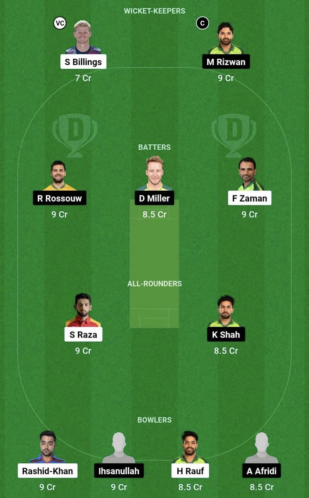 Batters: Rilee Rossouw, David Miller, Fakhar Zaman, Abdullah Shafique
