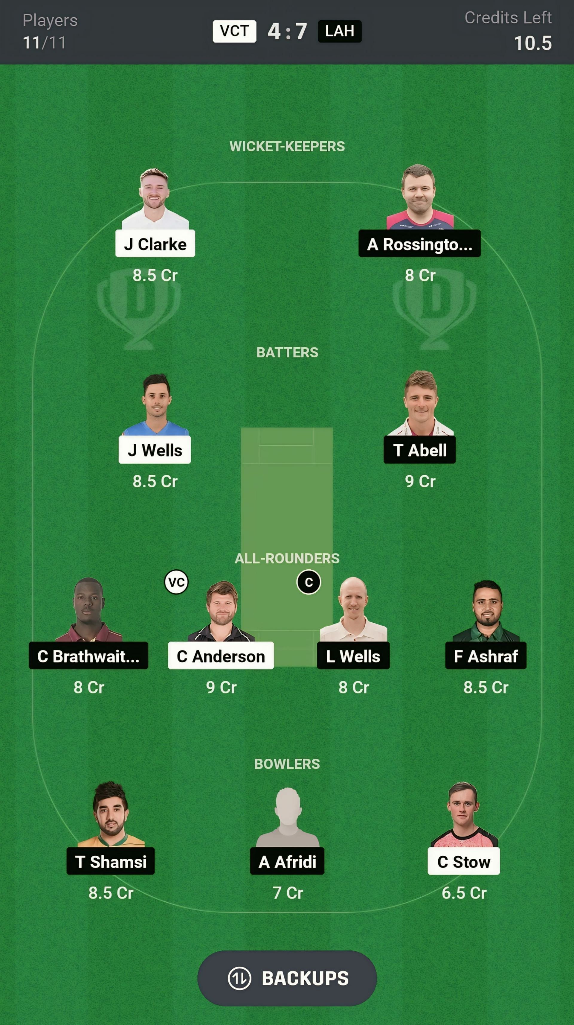 LAH vs VCT Dream11 Match Top Picks