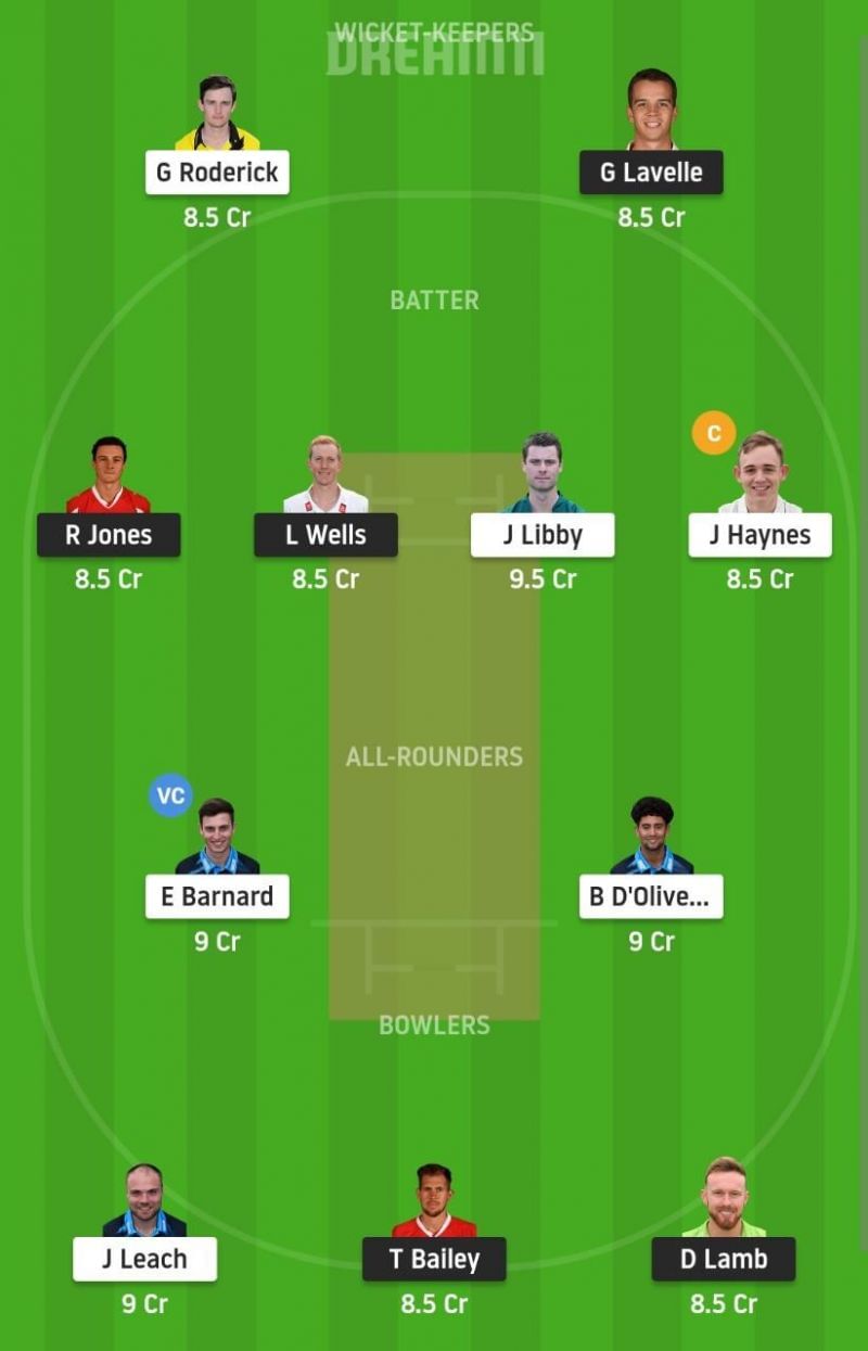 Fantasy Suggestion #1: Gareth Roderick, Jack Haynes, Rob Jones, Luke Wells, Jake Libby, Brett D’Oliveira, Ed Barnard, Danny Lamb, Joe Leach, Tom Bailey, Liam Hurt