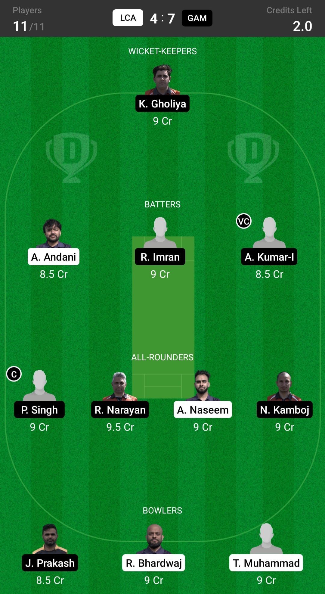 Top players to pick in LCA vs GAM Dream11 prediction team