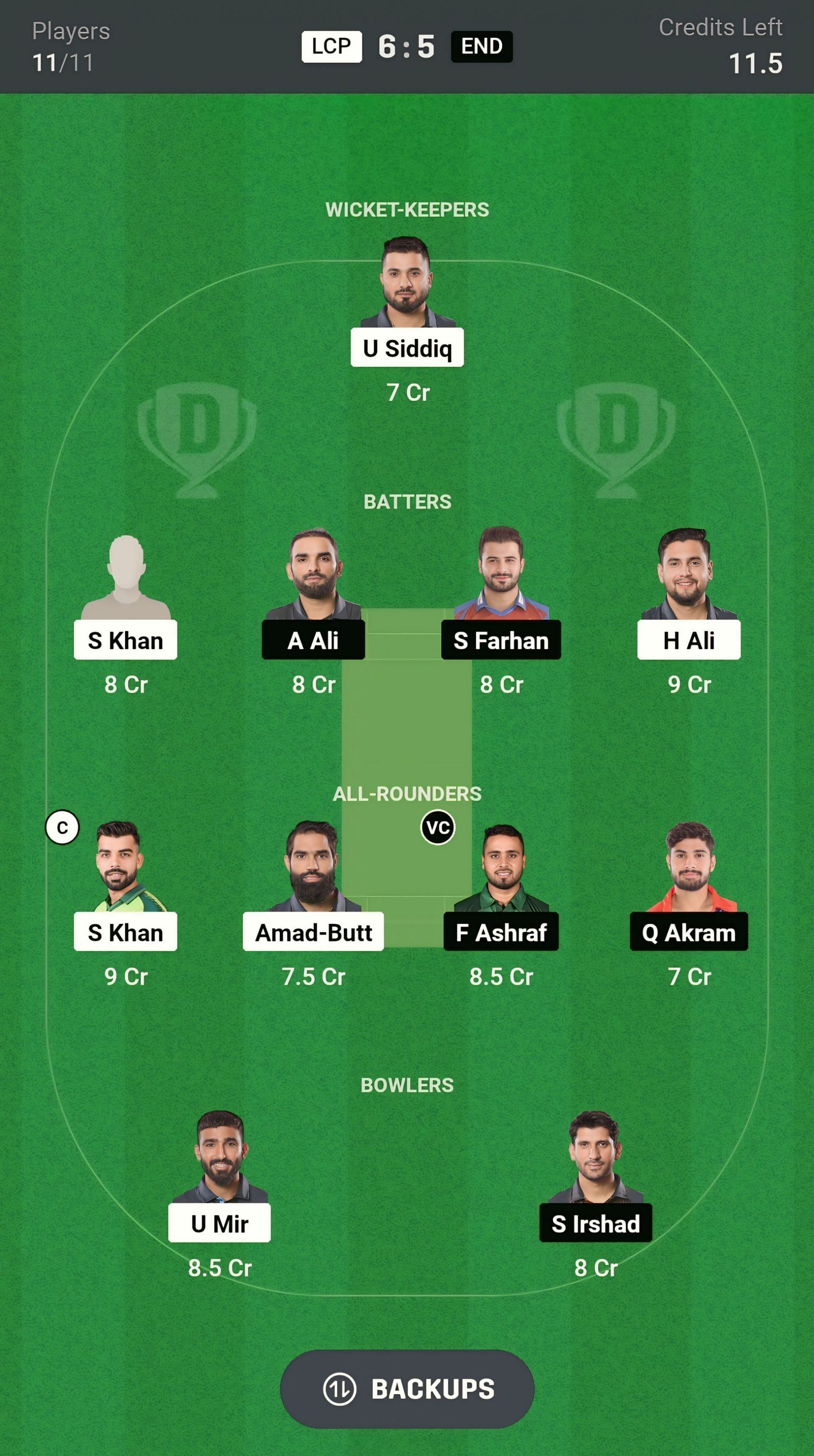 Umar Siddiq is undoubtedly the best wicketkeeper pick for today's match. He is expected to bat in the top order and perform the wicket-keeping duties for his team. He smashed 24 runs in the last match. Muhammad Akhlaq is another good wicket-keeper option for today's nail-biting match.