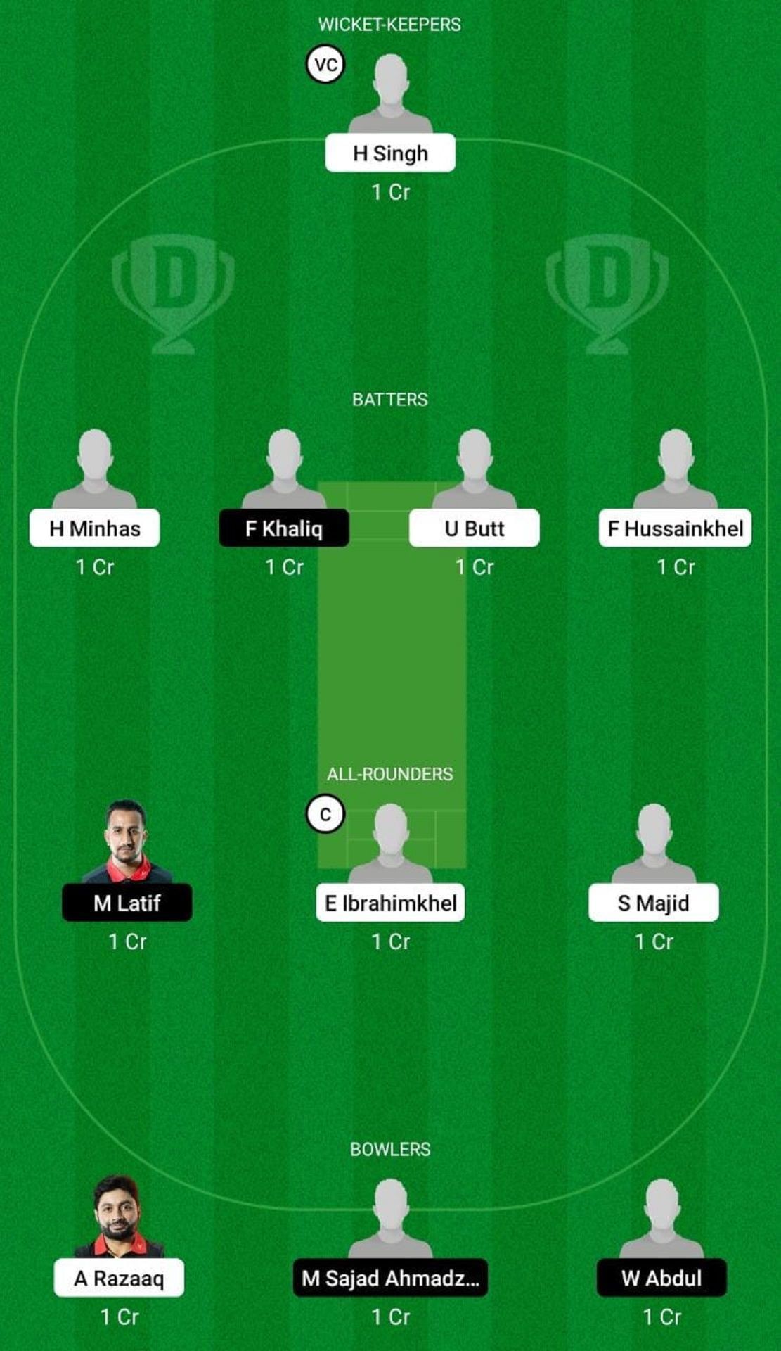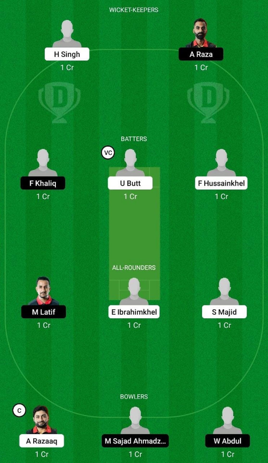 Umair Butt, Burhan Niaz, Shafiullah Zakhel, Hussainkhel Forqanullah, Waqas Raja, Hafiz Muhammad Ahsan Iqbal, Naseer Ud Din, Tejinderpal Singh (WK), Yosof Khan, Emran Khan Jabarkhel, Faisal Mehmood-I.