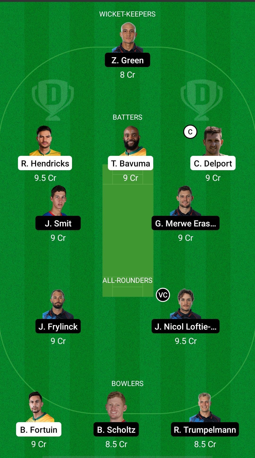 Batters: Reeza Hendricks (vc), Temba Bavuma, Cameron Delport, Stephan Baard, Gerhard Merwe Erasmus
