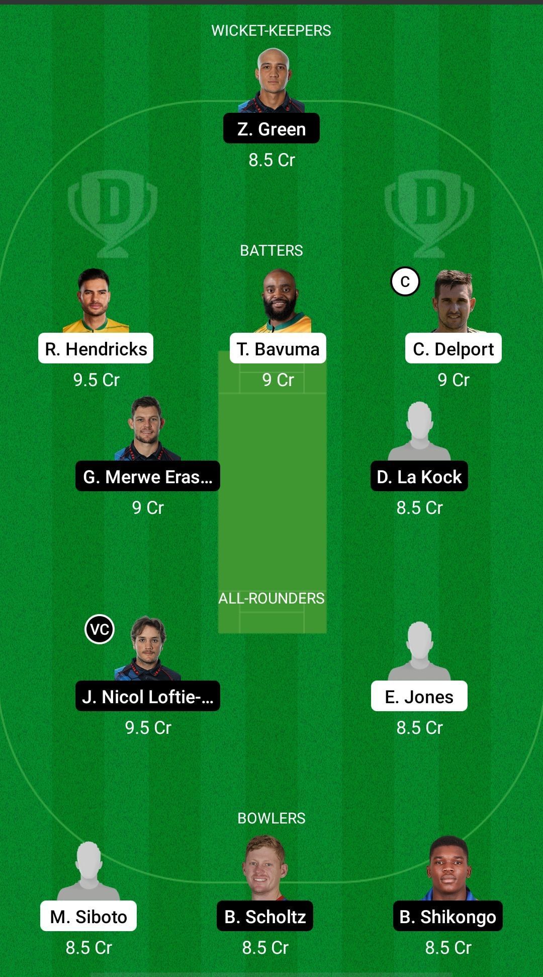 Batters: Reeza Hendricks, Temba Bavuma, Cameron Delport (c), Divan la Cock, Gerhard Merwe Erasmus