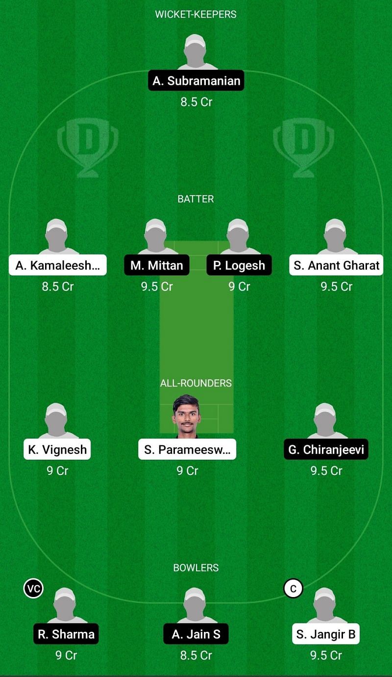 Fantasy Suggestion #2: Anand Subramanian, A Kamaleeshwaran, Mohit Mittan, Logesh P, Shreeraj Anant Gharat, Kannan Vignesh, S Parameeswaran, G Chiranjeevi, Raghu Sharma, Akshay Jain S, Satish Jangir B
