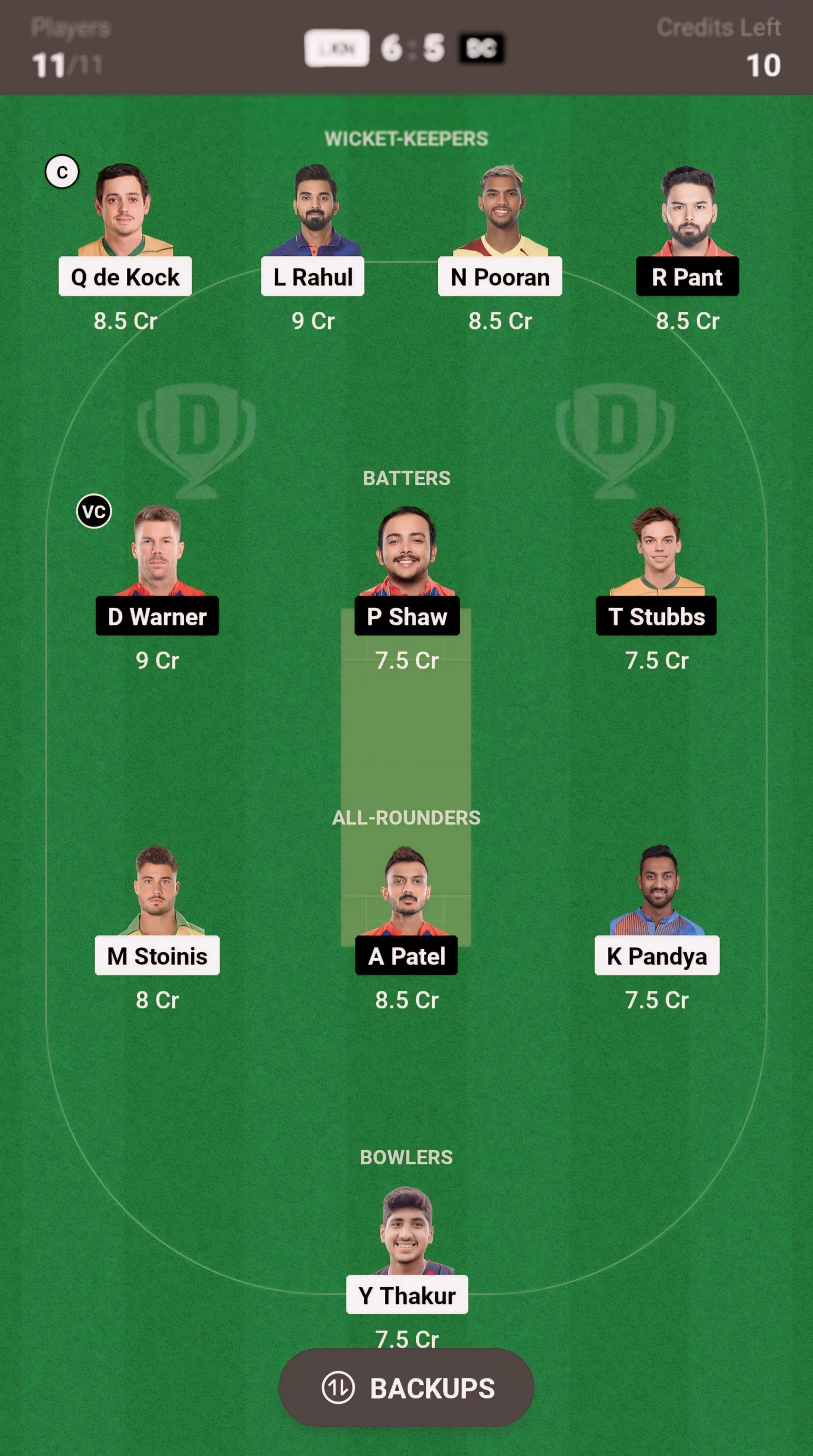 Lucknow SuperGiants vs Delhi Capitals Dream11 Prediction Today, Grand League