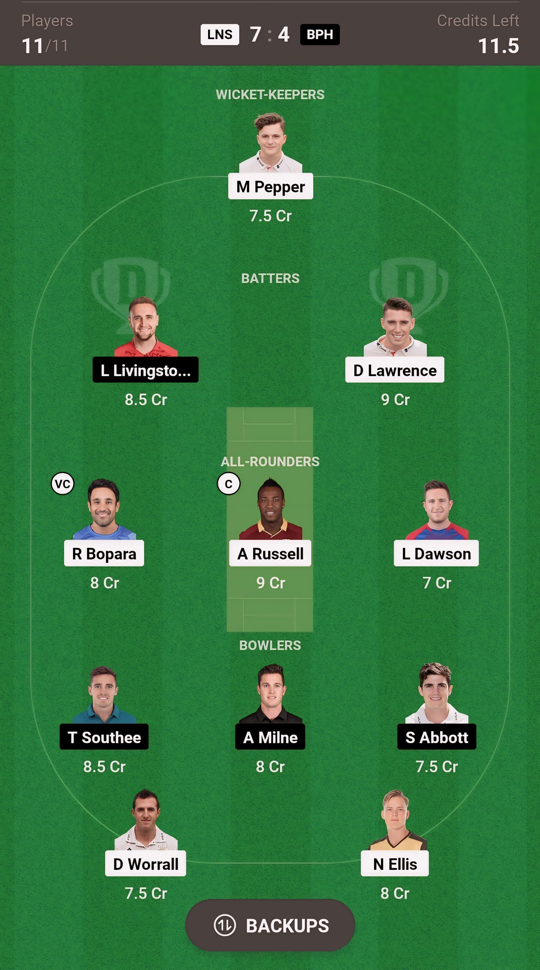 Ravi Bopara and Andre Russell are the best all-rounder picks for the Dream11 team. Andre Russell smashed 13 runs and even bowled well in the last match. Liam Dawson and Benny Howell are other good all-rounders as they can perform well both with bat and ball.