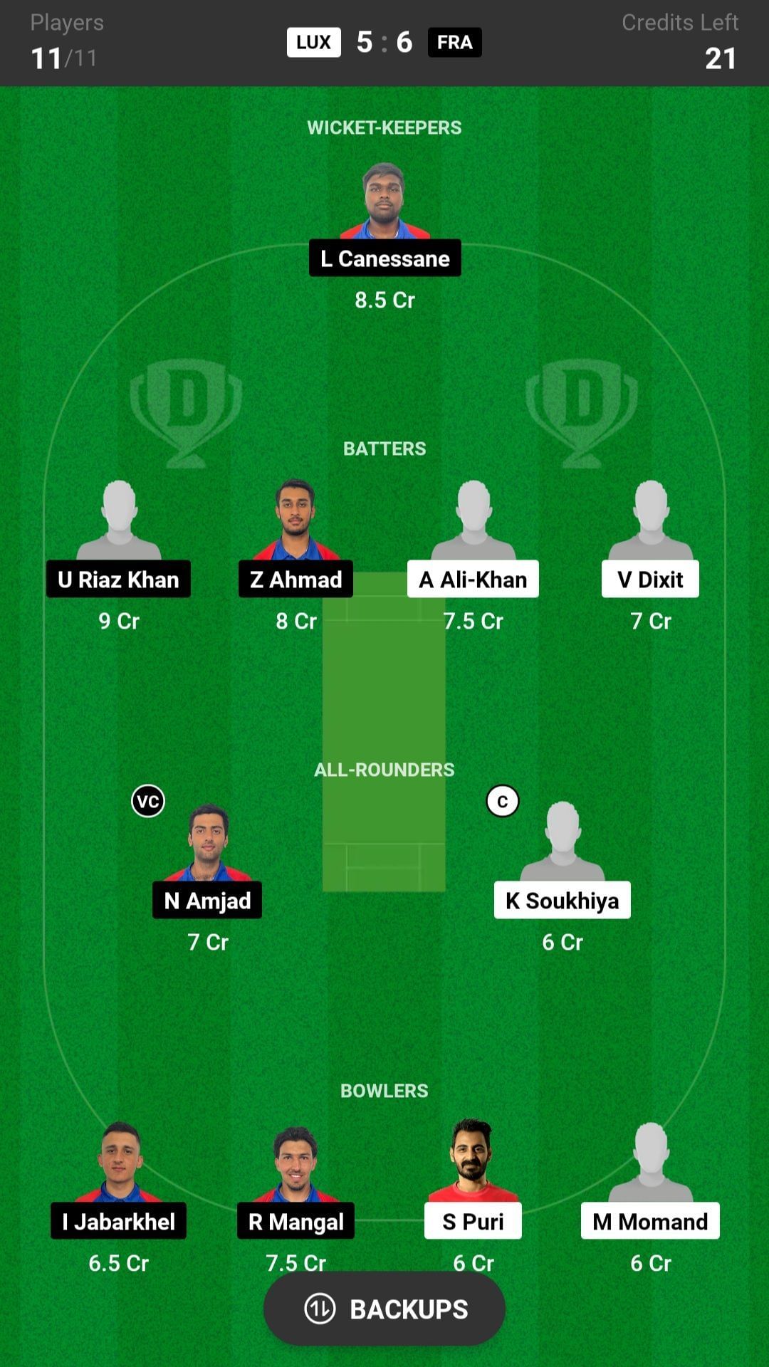 V Dixit and Z Ahmed are the two best batsmen picks for the Dream11 team. U Riaz played exceptionally well in the last series, so he is also a good pick for today's Dream11 fantasy team.